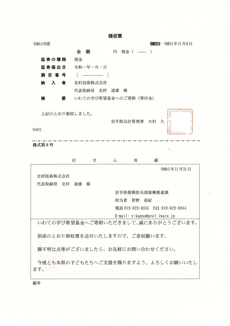 当社ではいわての学び希望基金様に定期的な寄付を行っております。