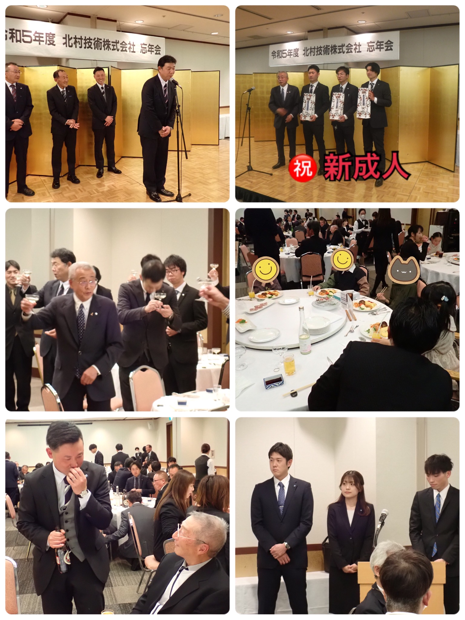 今回は、アートホテル弘前シティさんの会場をお借りし、楽しい時間を過ごさせていただきました。ありがとうございました。美味しいお料理🍖🍣🥗🍰&お酒🍺🍷🍸でお腹一杯、あっという間の2時間でした。協力会社さん含め、一年間お疲れ様でした♡普段、派遣に出ていたり、遠い現場でなかなか会えない社員同士で話も弾みましたね♪宮城支店の社員、北村技術ホールディングスの仲間、八戸測量設計さんにもお揃いでご参加いただきました。
