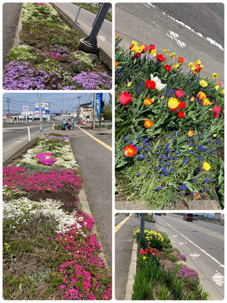 会社の前を通る際、色とりどりのお花に癒されてくださいね(^_-)-☆
