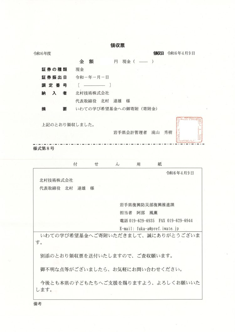 当社でもいわての学び希望基金さんに定期的な支援をおこなっています