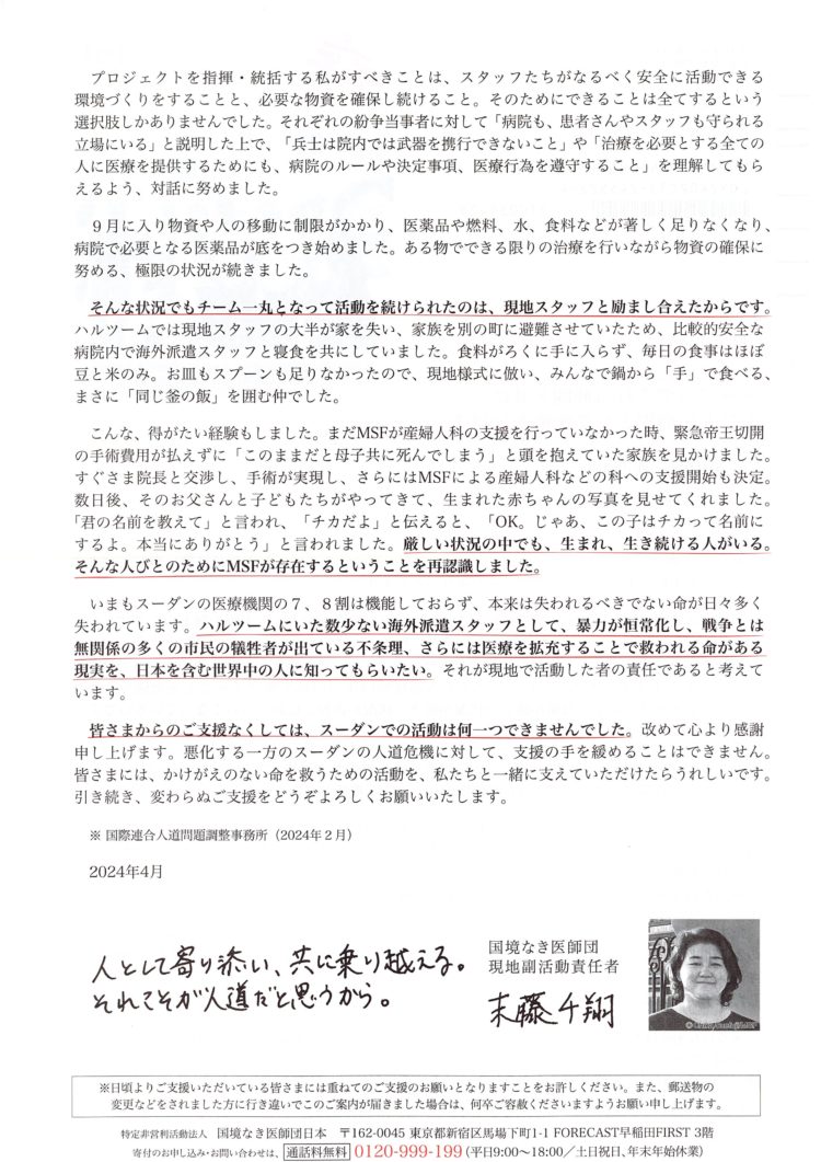 国境なき医師団では現地で日本人スタッフの皆さんも奮闘されています。