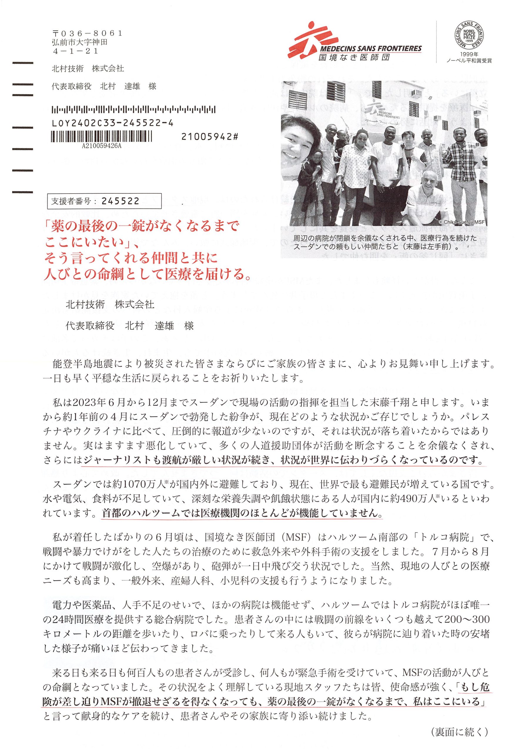 当社では国境なき医師団様に定期的な寄付を行っております。