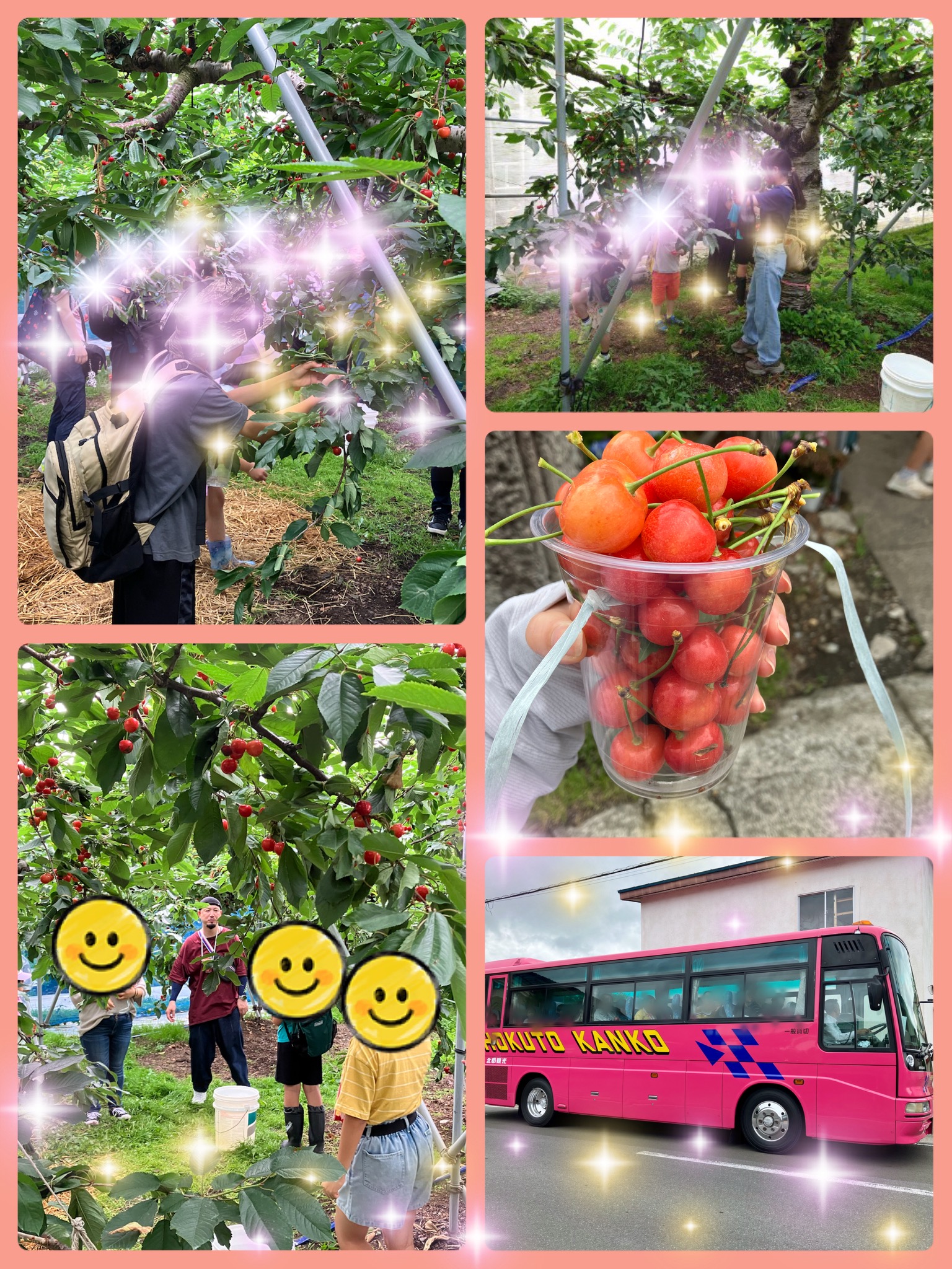 朝から雨が降ったり止んだりのお天気でしたが、さくらんぼ狩りの最中は晴れ間が🌤☀みんなの日ごろの行いが良いんでしょうね(^.^)