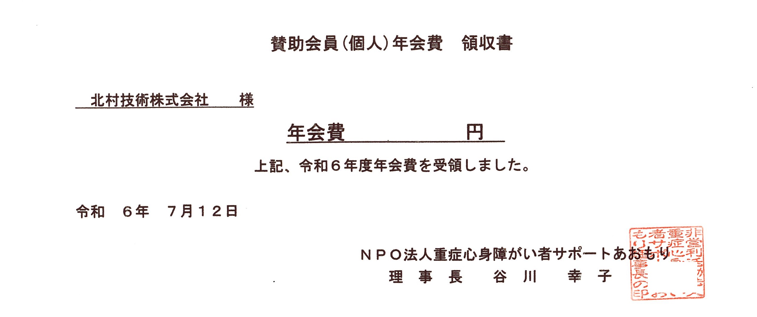 北村技術では重症心身障がい者サポートあおもり様に定期的な寄付を行っております