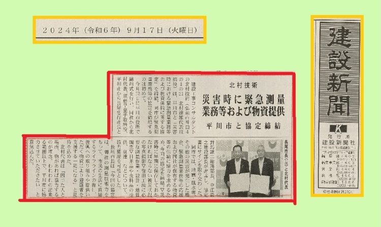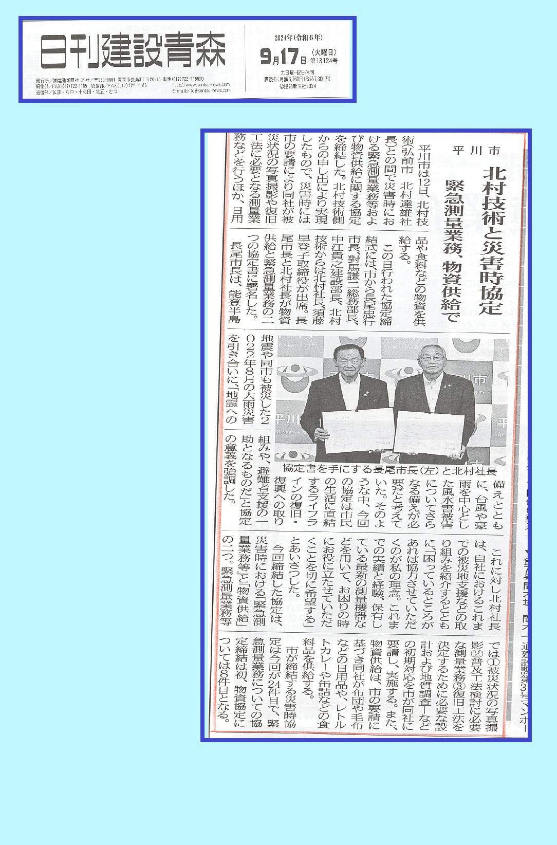 令和6年9月12日、平川市役所本庁舎にて、平川市と北村技術株式会社が