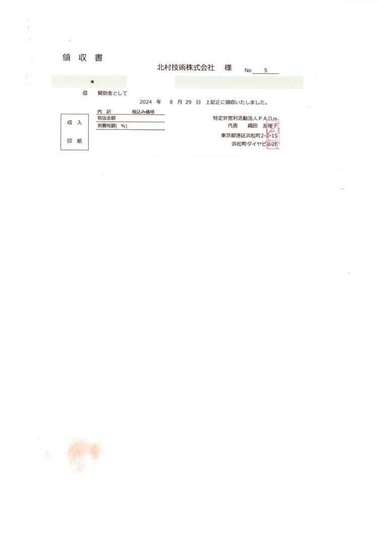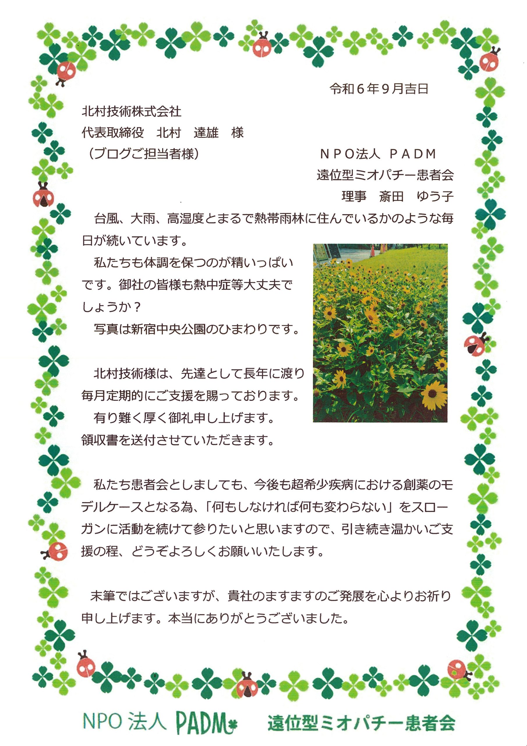 北村技術ではPADM🍀遠位型ミオパチー患者会様に定期的な寄付を行っております