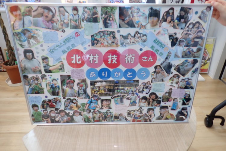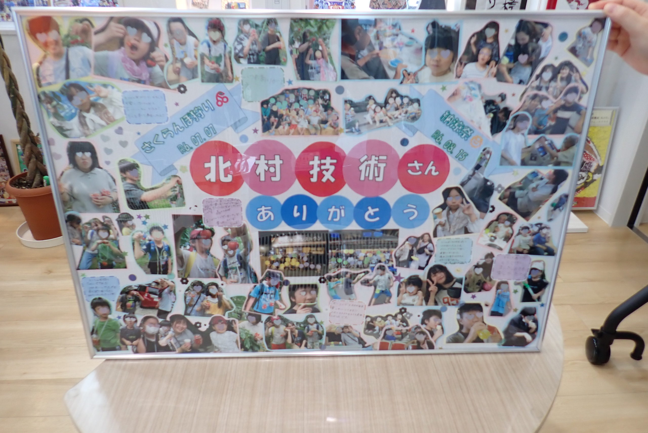 >児童養護施設『弘前愛成園』佐藤園長、卒園生(社会人介護福祉士)と夏祭り納涼会(出店・ボーリング🎳 焼肉)記念ボードもって来社、