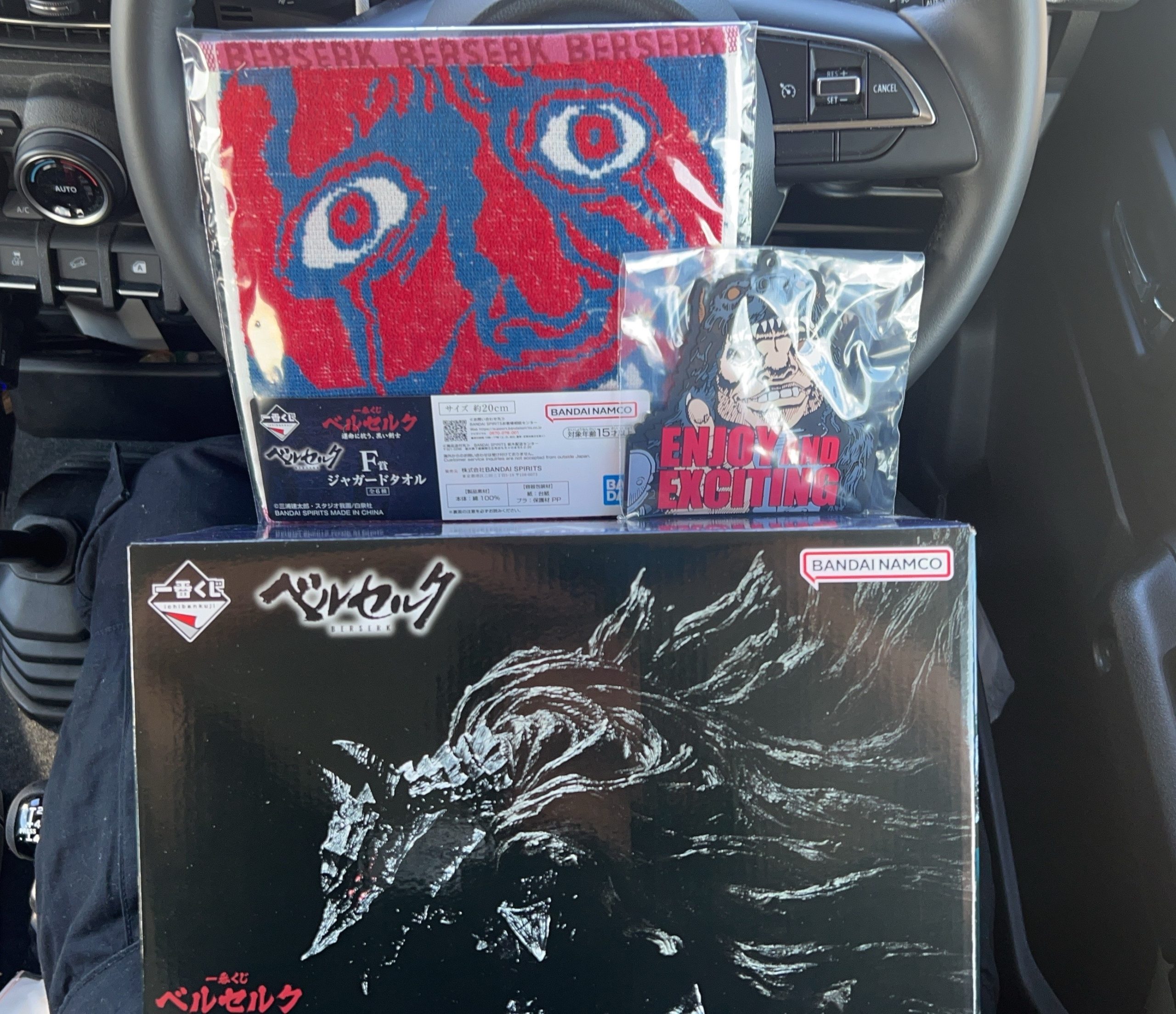 最近やった一番くじですベルセルク(アニメ・漫画)が好きで3回やりました欲しかったフィギュアが当たったので良かったです…欲を言ったらB賞も欲しかったです 1回850です(✾♛‿♛)