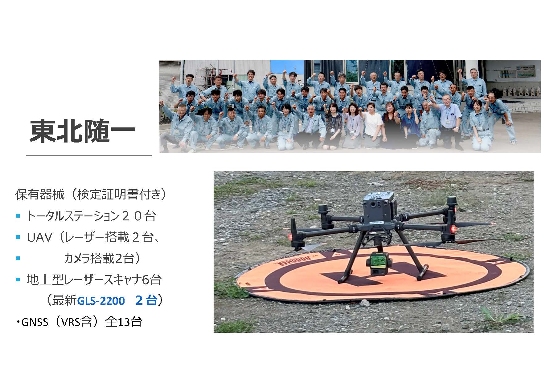 東北一の保有台数、と測量技術者、そして、機動力を備えて