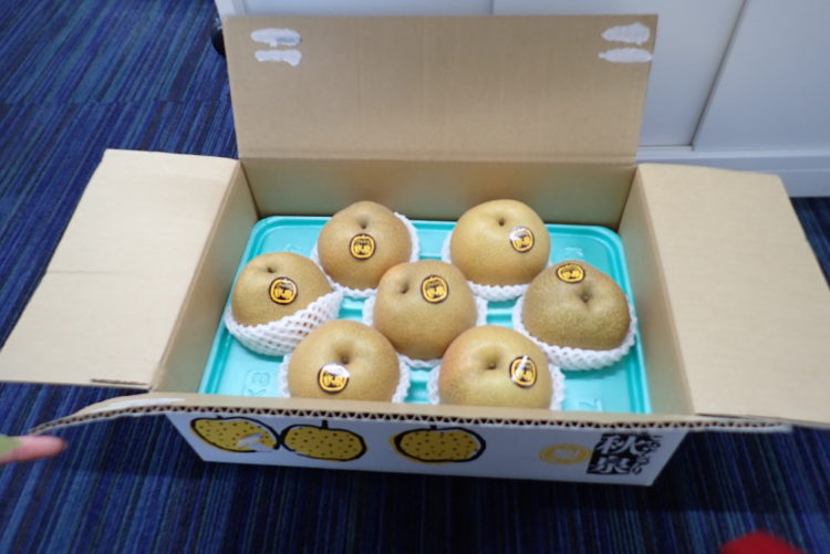 「秋泉」は、秋田県 果樹試験場が育成した和梨(赤梨)で、甘みの強い「新星」 とみずみずしい「豊水」をかけあわせて生まれた秋田県初のオリジナル日本梨だそうです。