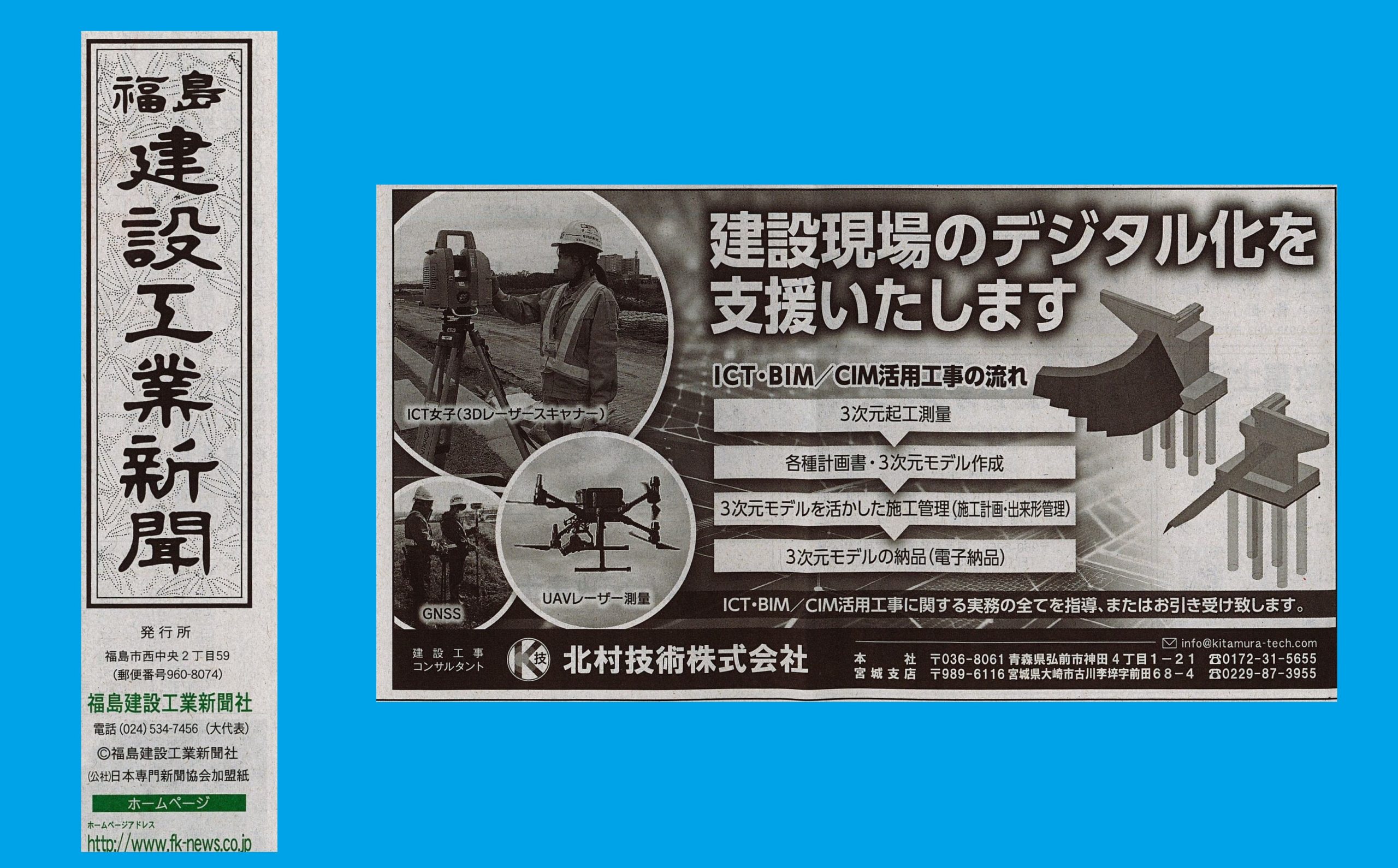 福島建設工業新聞様、掲載ありがとうございます!