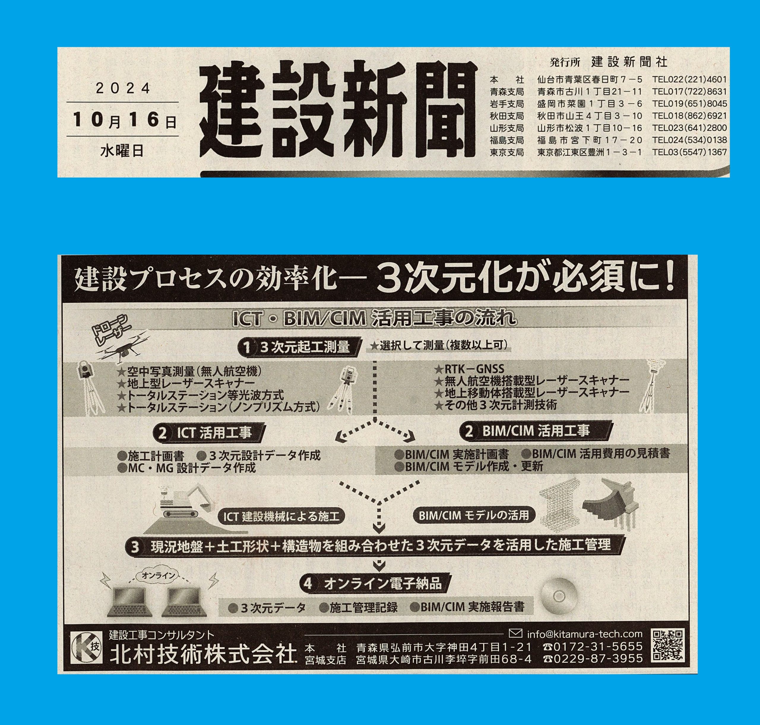 10月16日付 建設新聞様に広告を掲載いただきました。
