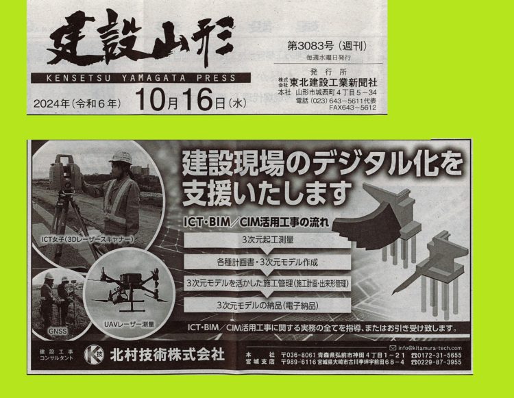みやぎ建設新聞様、日刊岩手建設工業新聞様、建設山形様、日刊秋田建設工業新聞様、掲載ありがとうございます❗❗