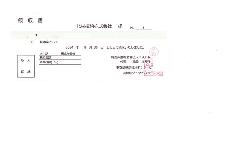 北村技術ではPADM遠位型ミオパチー患者会様に定期的な寄付を行っております