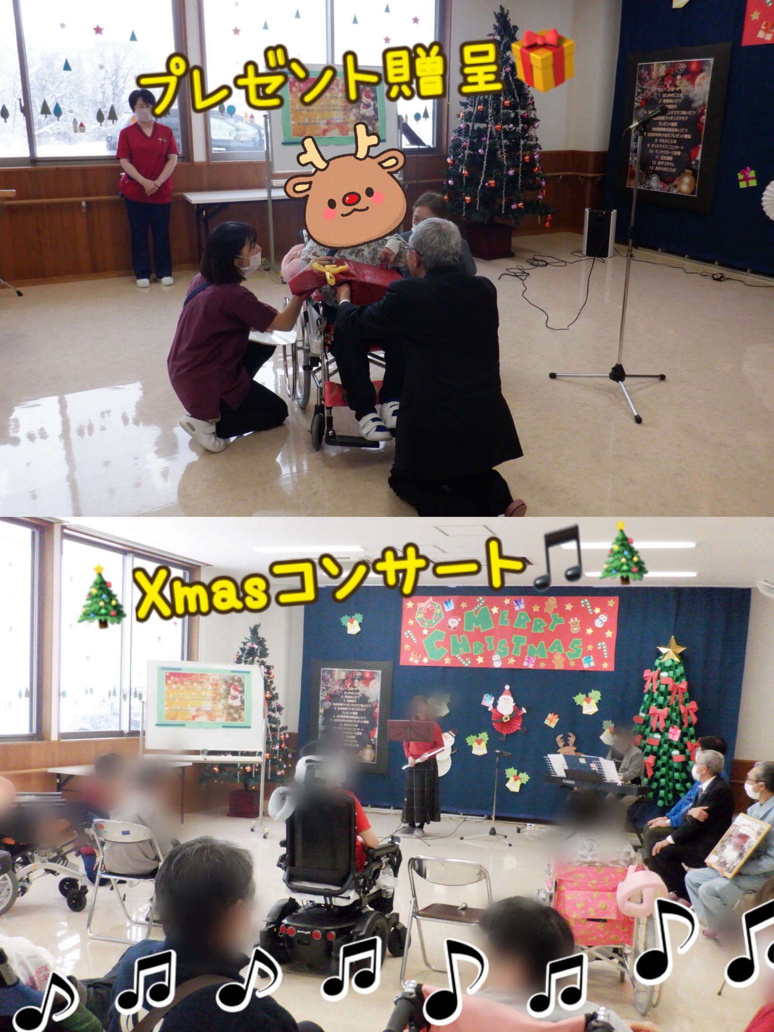 プレゼント贈呈、入所者のご家族によるコンサート🎹