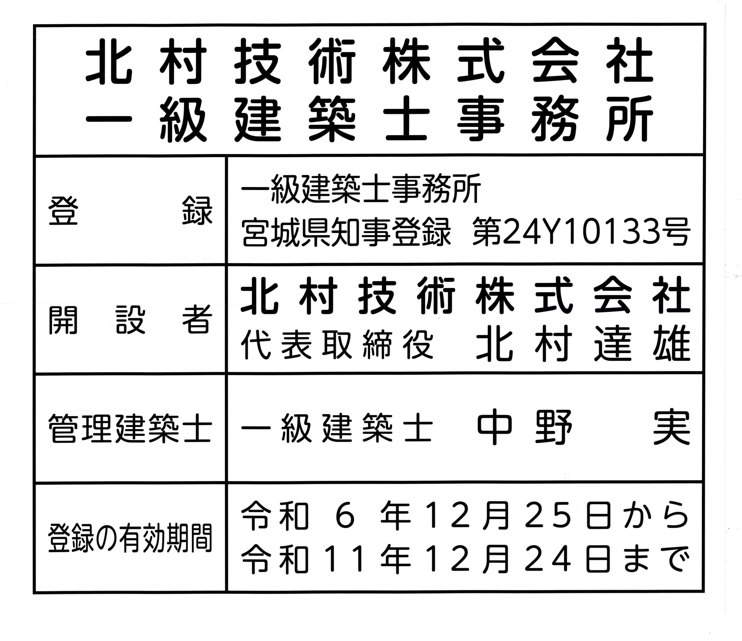 このほど昨年12月25日北村技術一級建築士事務所登録しました。