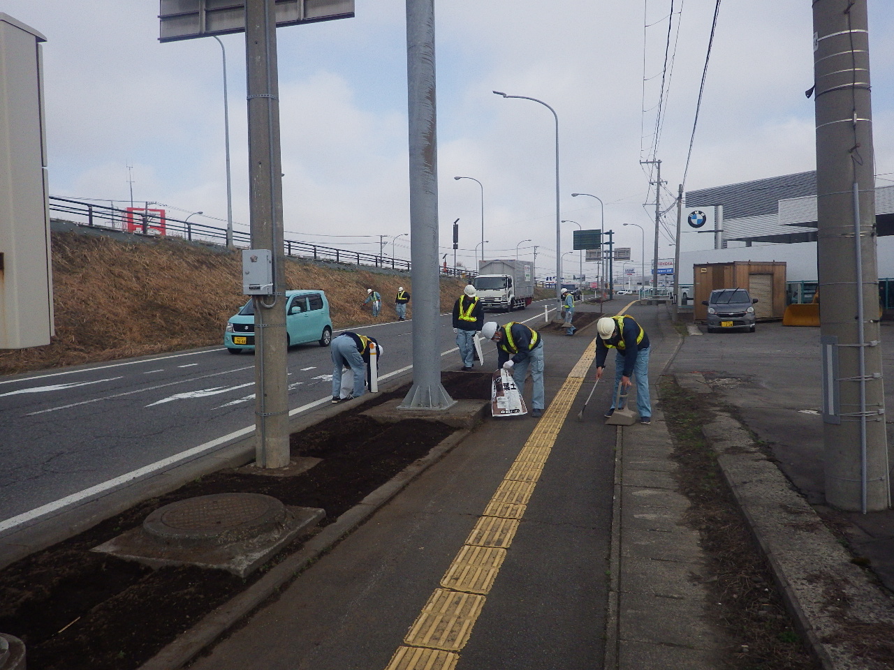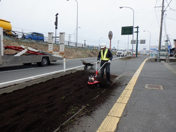 4月に入り、沿道の花壇づくりもはじめました