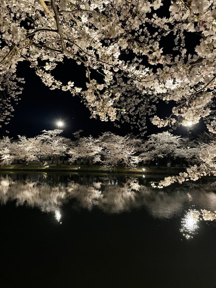 ⇩西堀のリフレクション。夜桜で人気のスポットです。