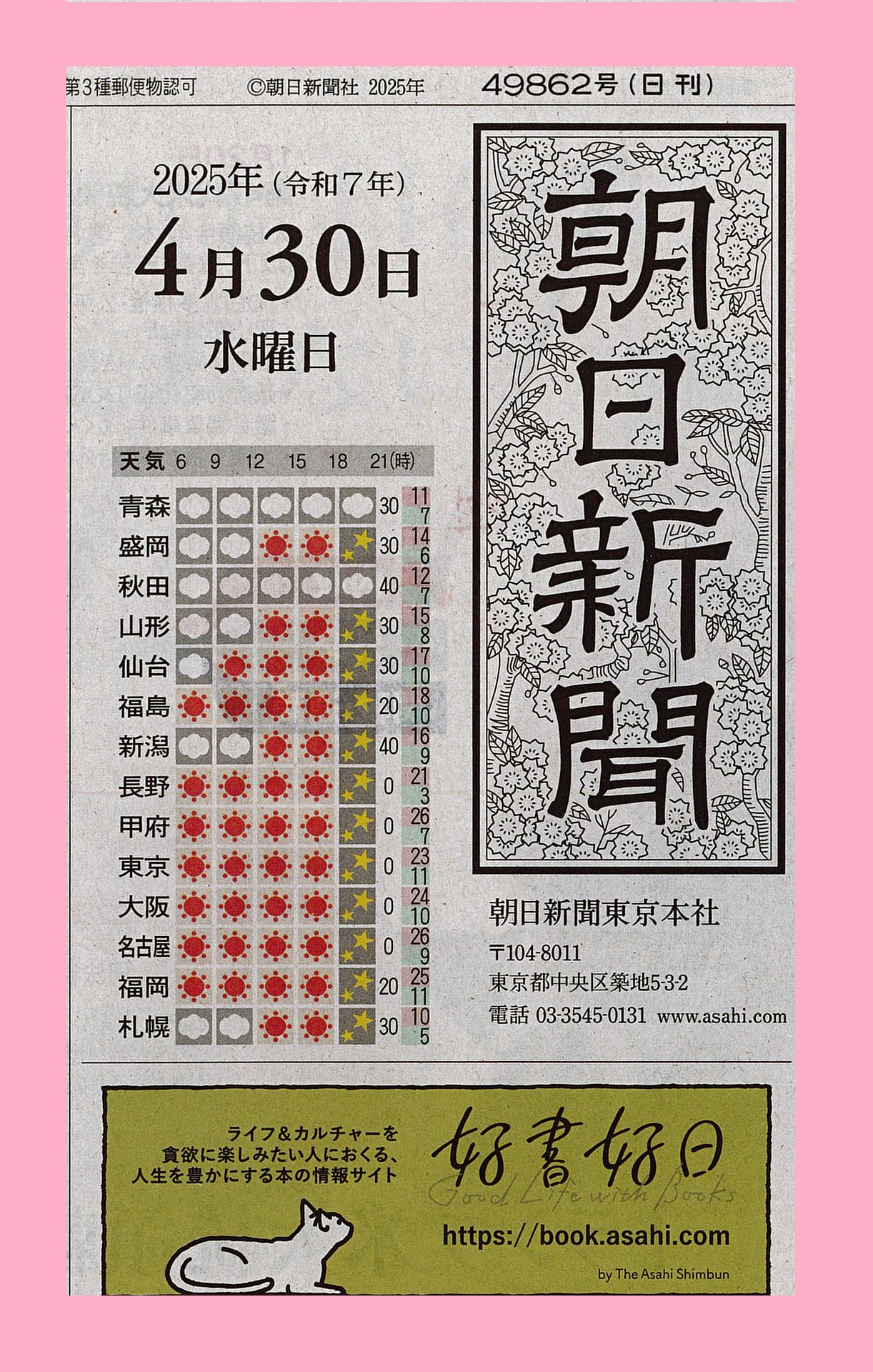 今日は朝日新聞さんへの掲載された広告のご紹介です