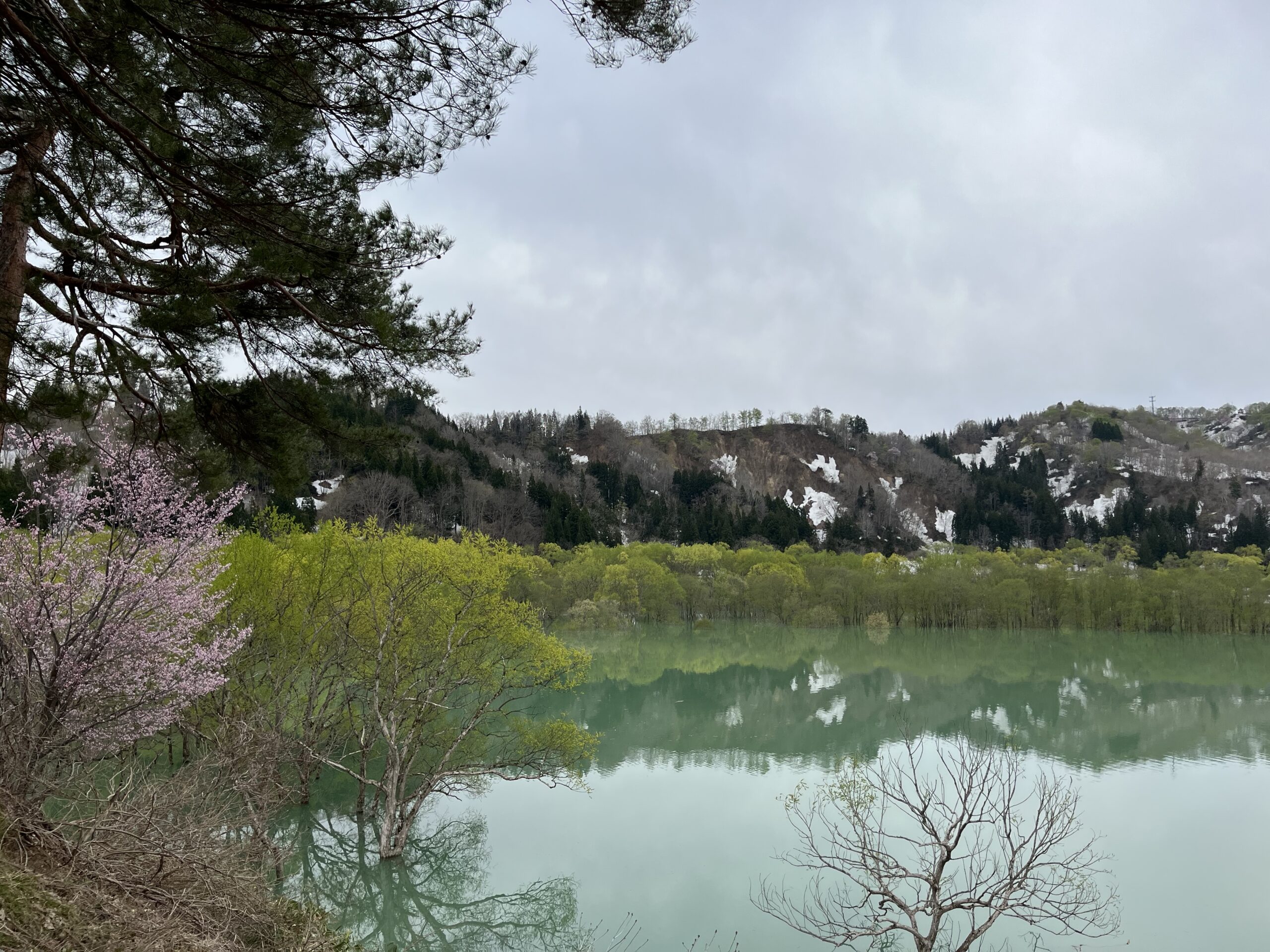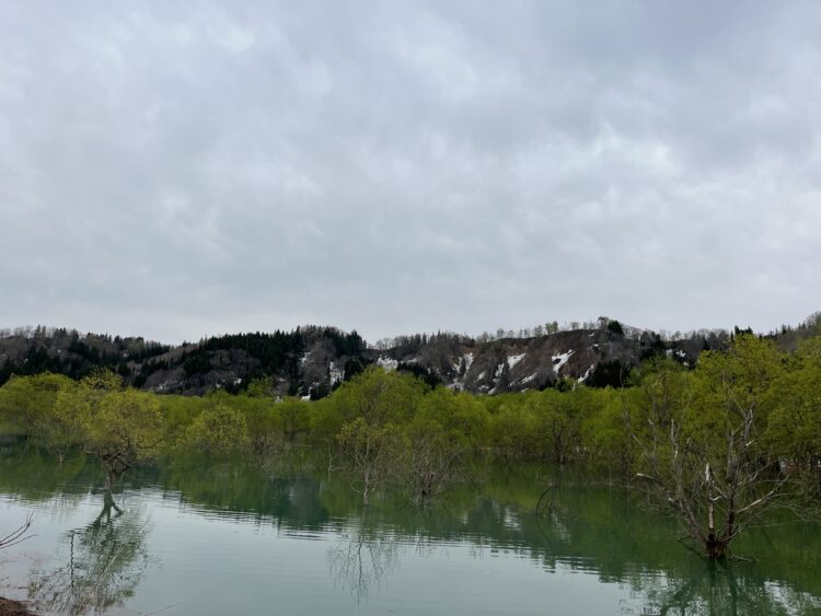 この時期だけ、大量の雪解け水がダムに流れ込みこの景色が現れます