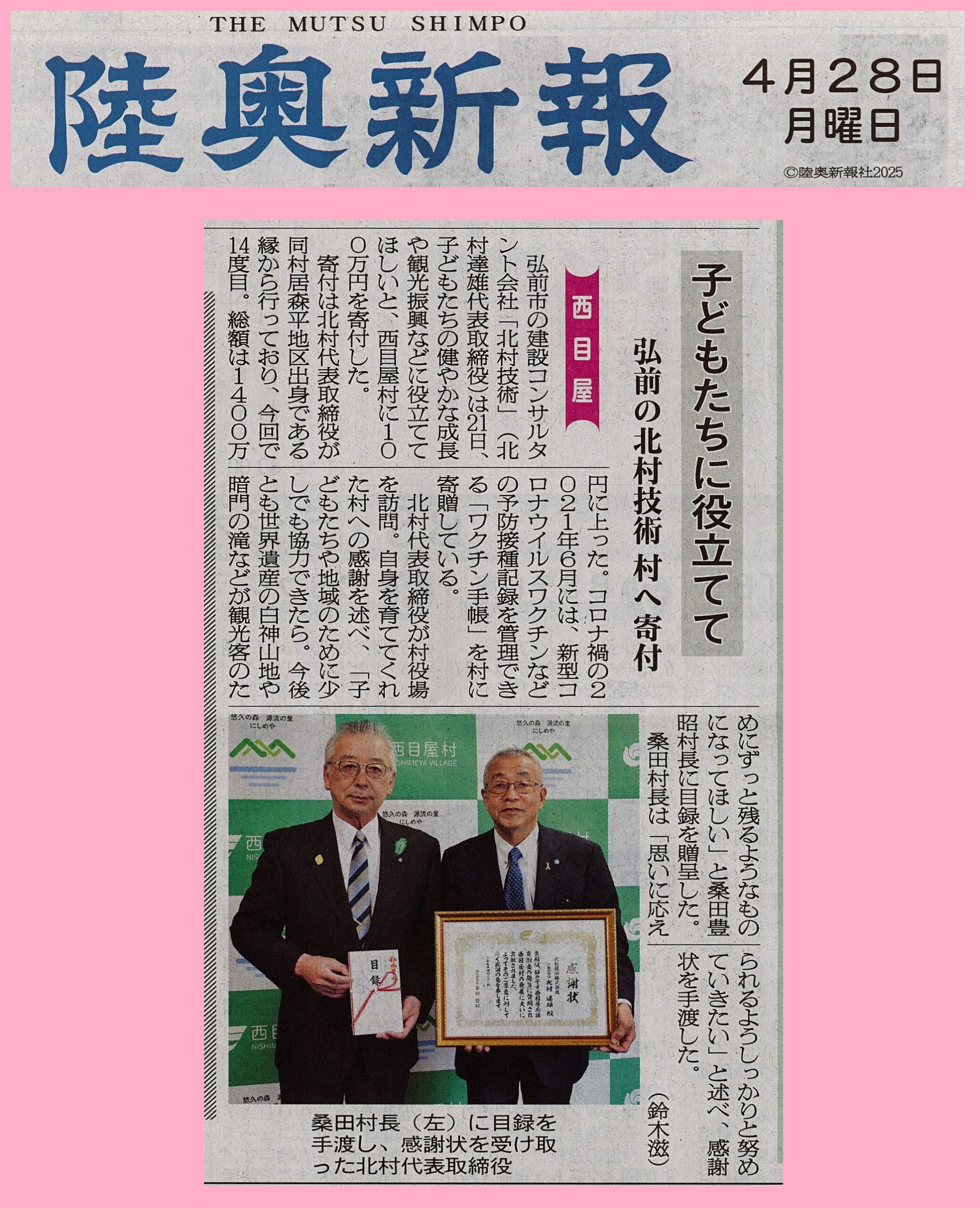 子育て基金50万円、世界遺産『暗門の滝や世界遺産保護など』50万円