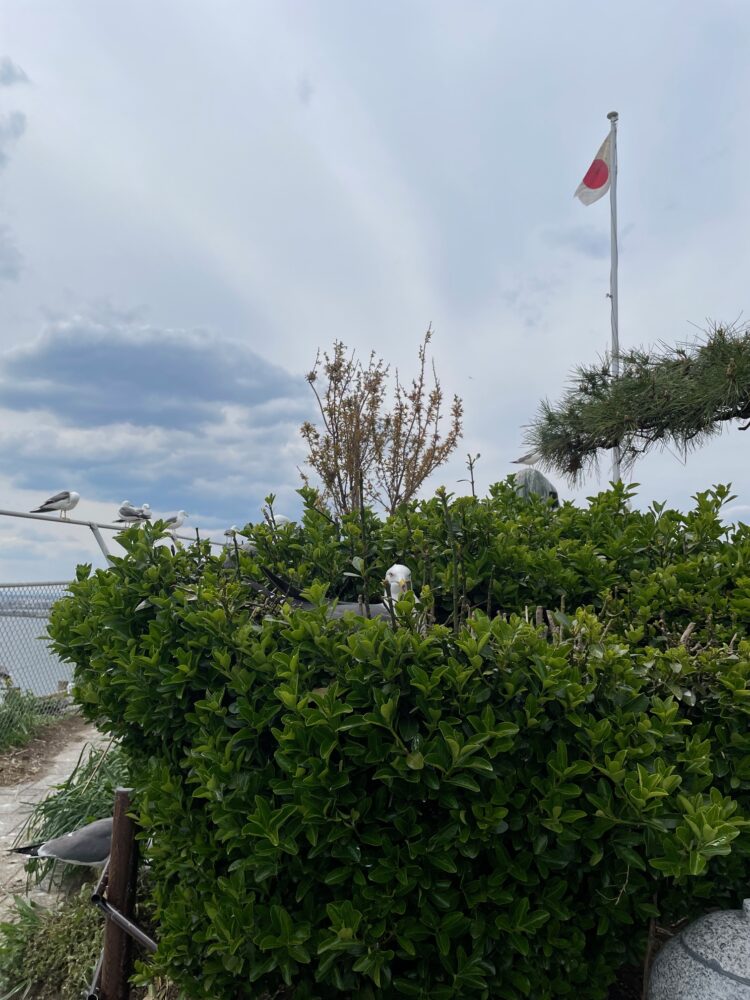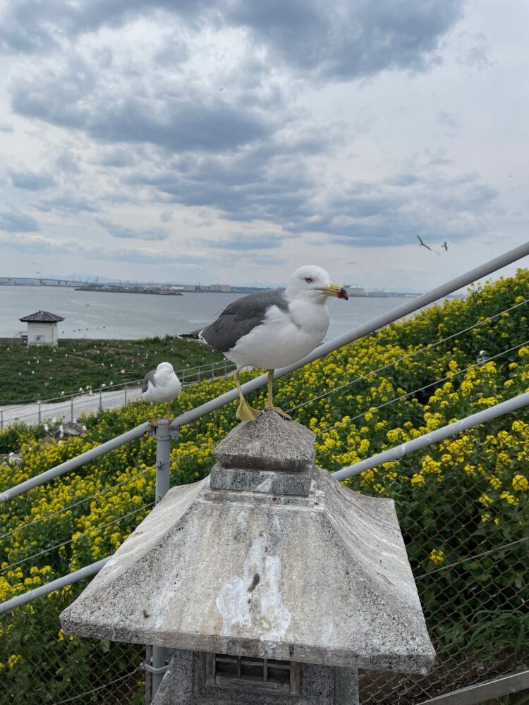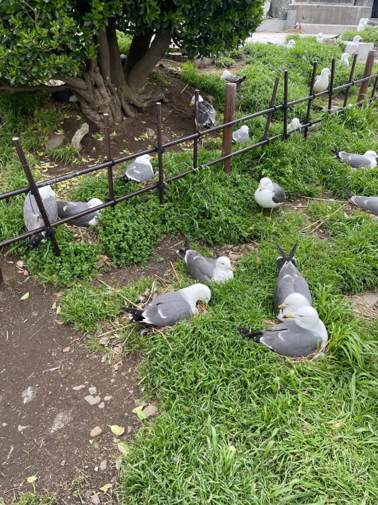 傘をみんなさしていました。傘をさしているのに、ウミネコ爆弾を投下された方もいました💦(ちなみに私は傘無しでも無事でした(;’∀’))