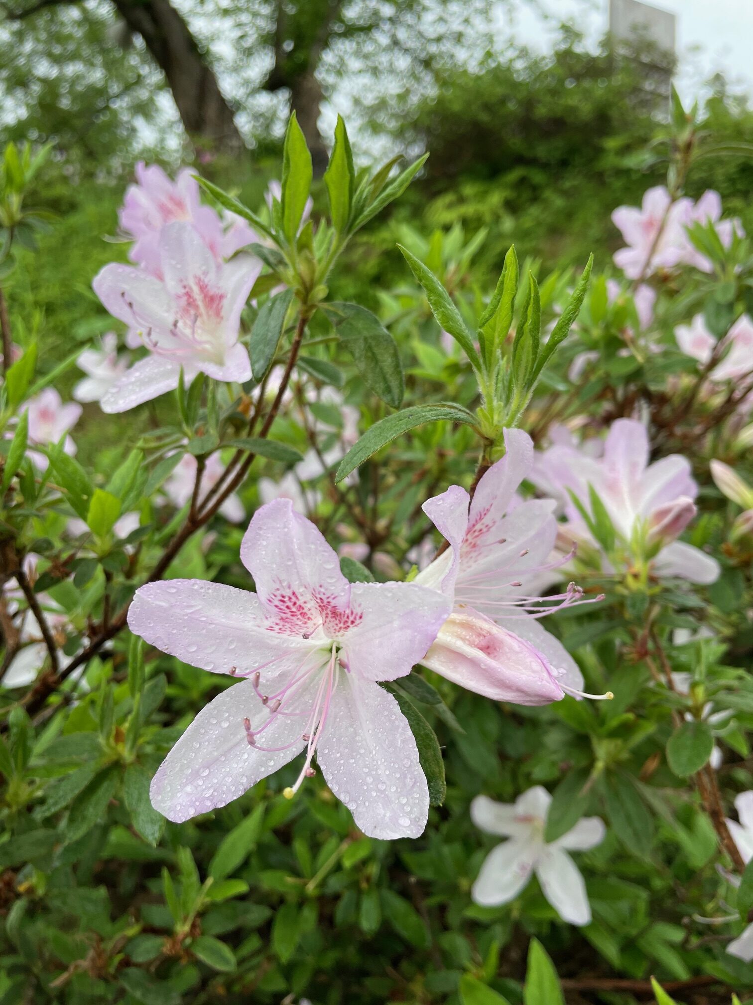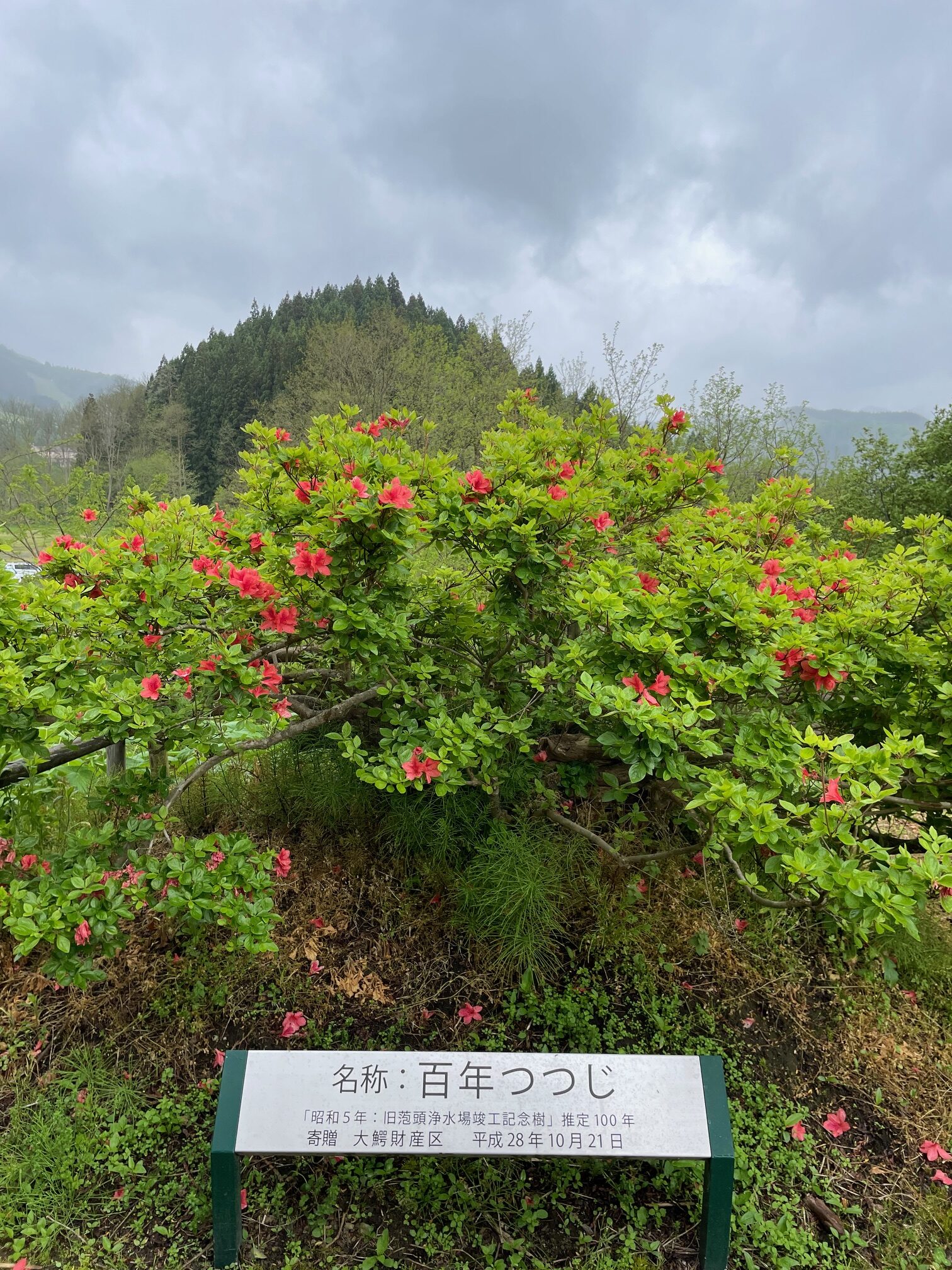 あいにくの天気で、人出は多くありませんでしたが、ツツジは八分咲きくらいで、なかなか見ごたえがあってきれいでした。