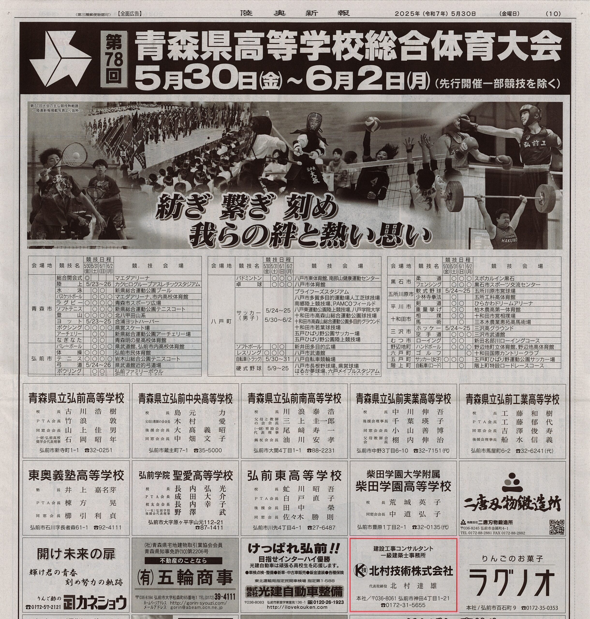 毎年、陸奥新報さんに広告を掲載させていただいております😊