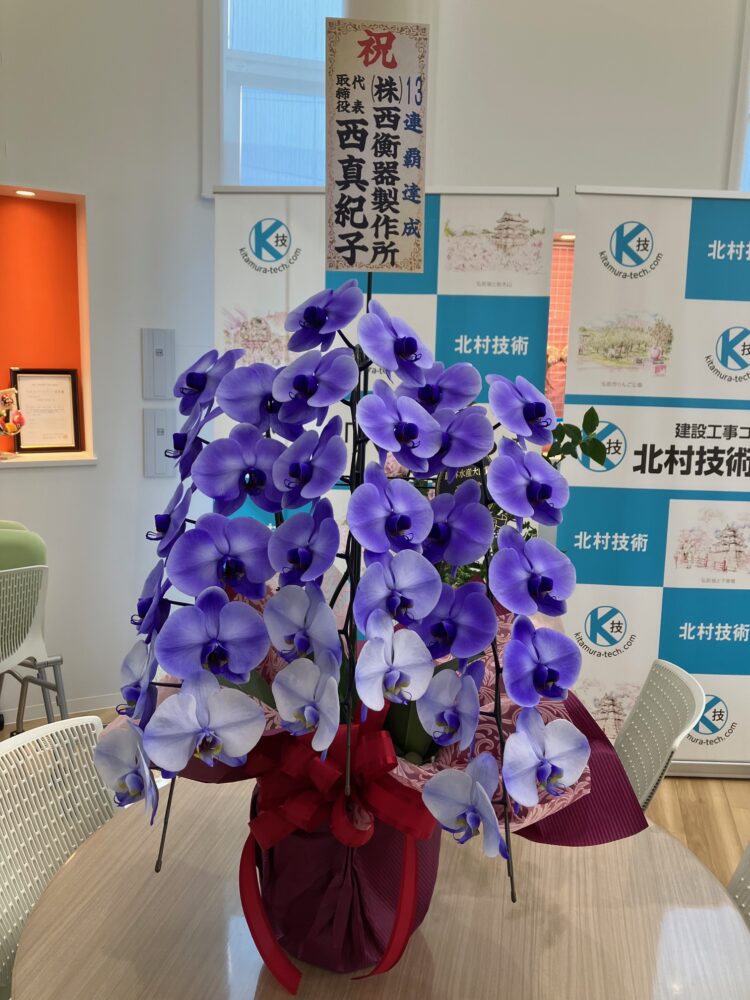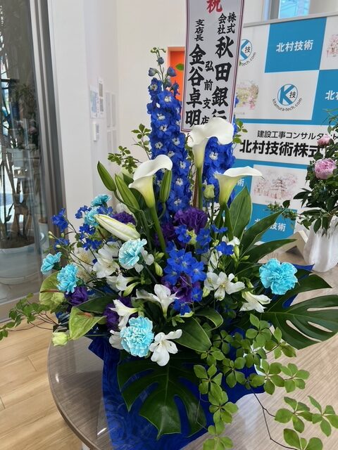 お祝いのお花を秋田銀行様、西衡器製作所様よりいただきました!