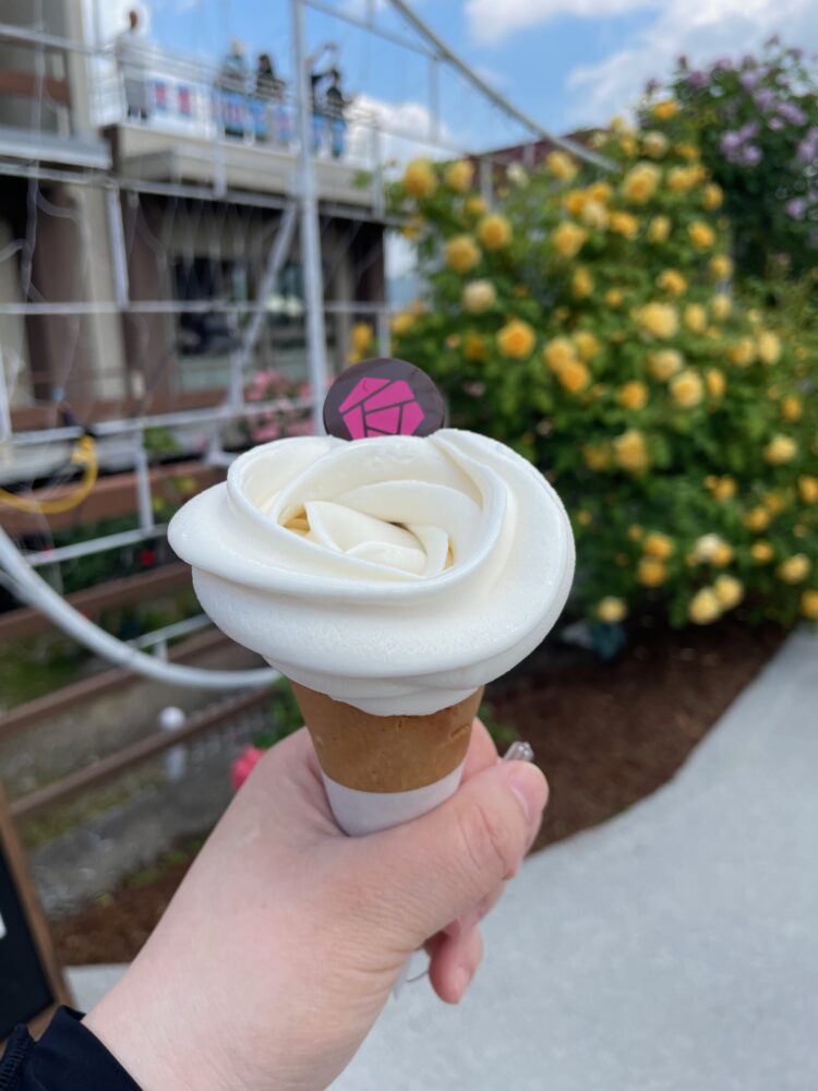 今年リニューアルされたバラソフト。バラの風味、香りはなく、見た目がバラです🌹。味は濃厚なミルク味🥛(バニラ)