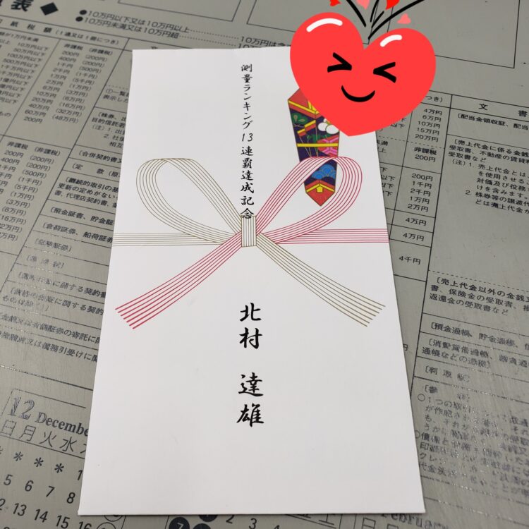 北村社長より従業員に「測量ランキング13連覇達成記念」を頂きました( *´艸`)