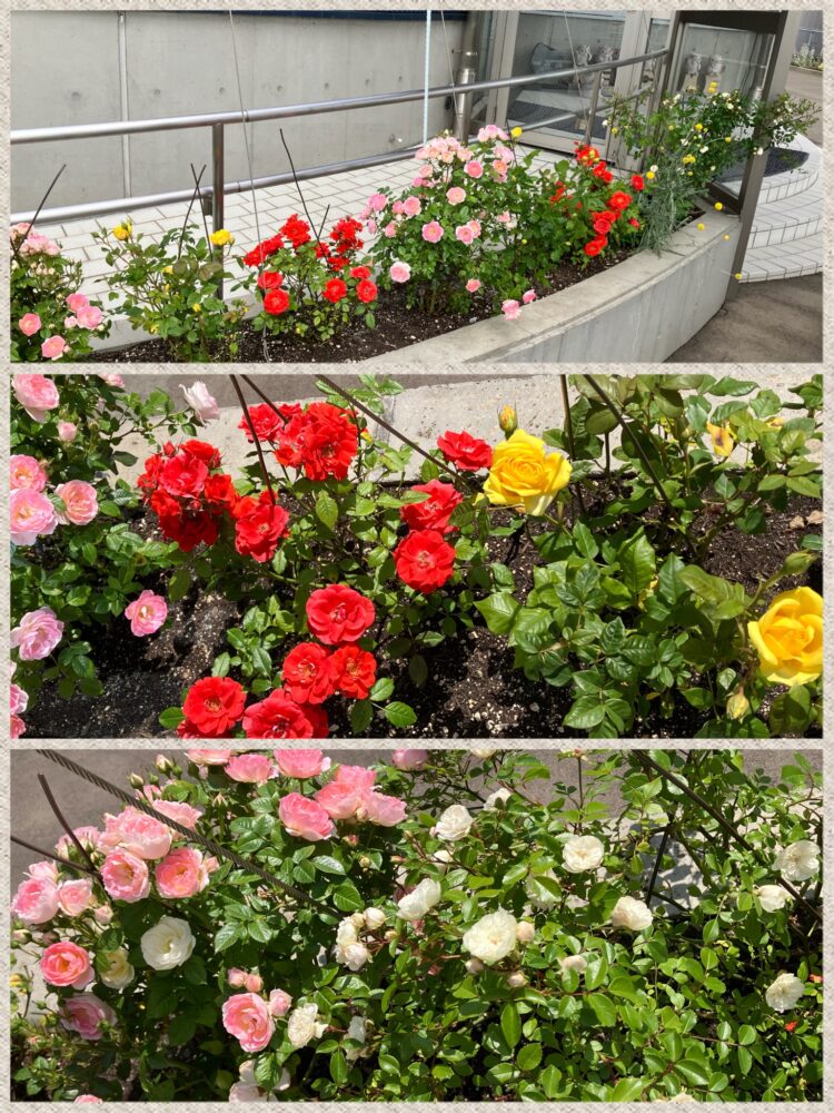 本社玄関前のミニバラも満開🌹