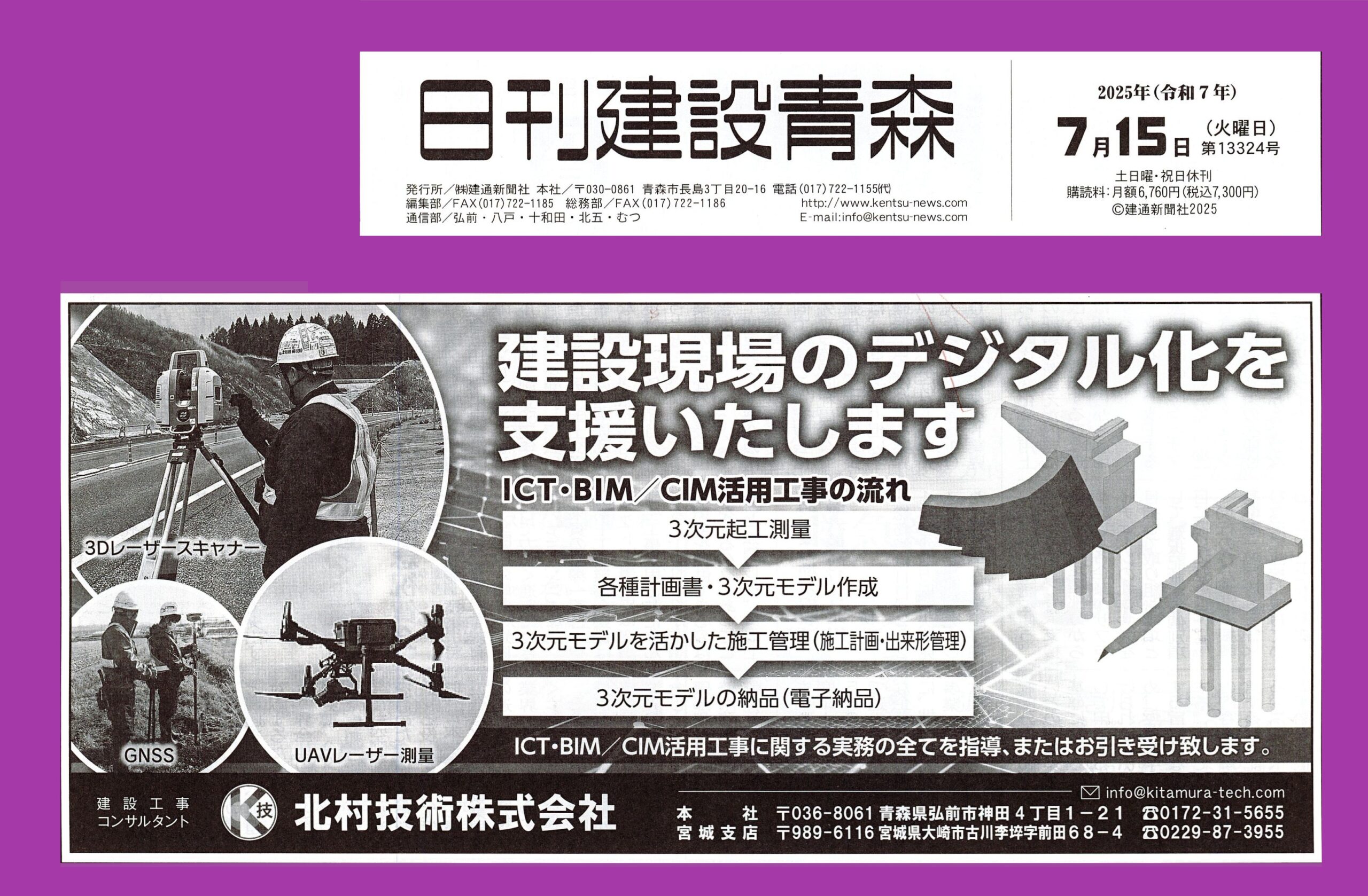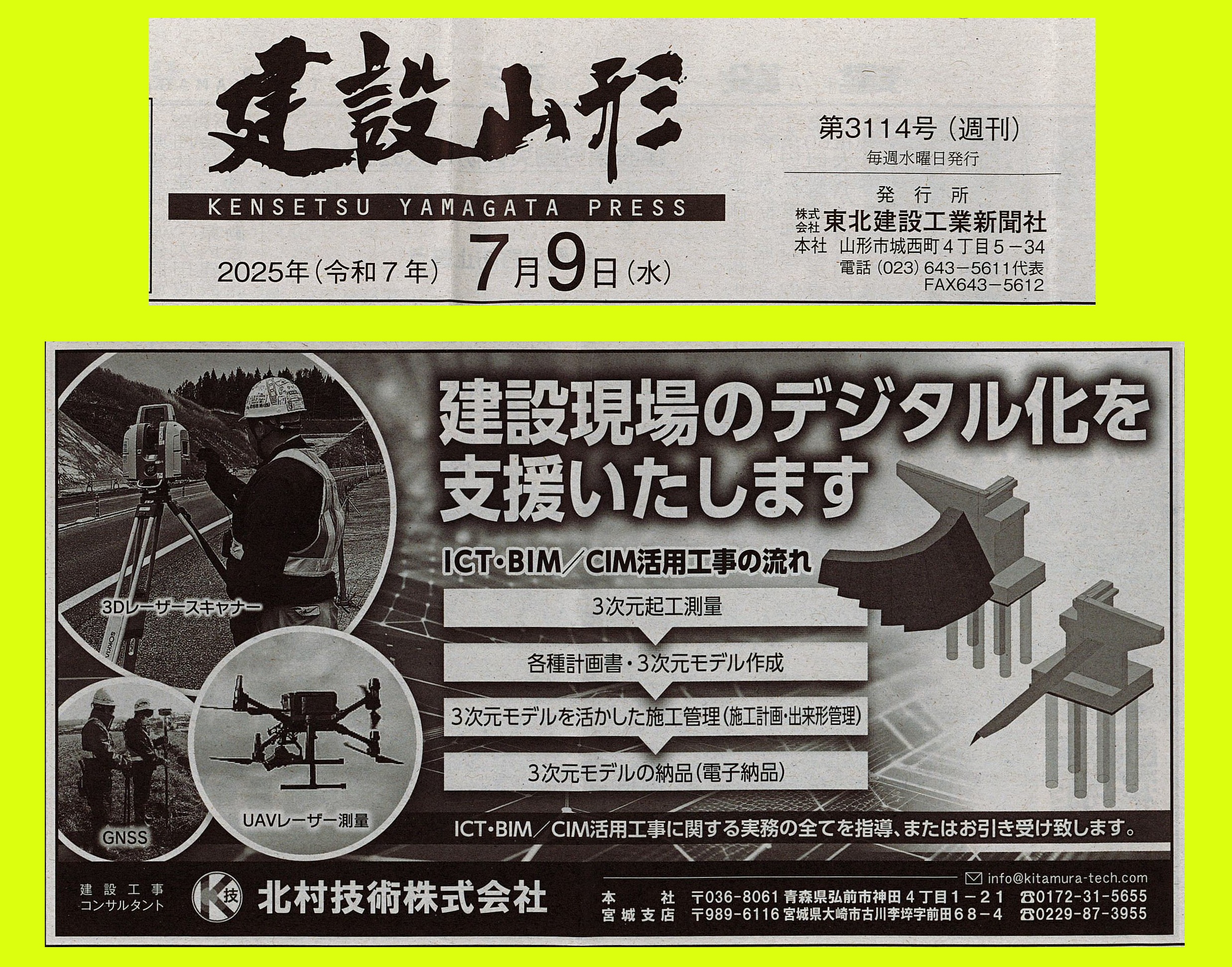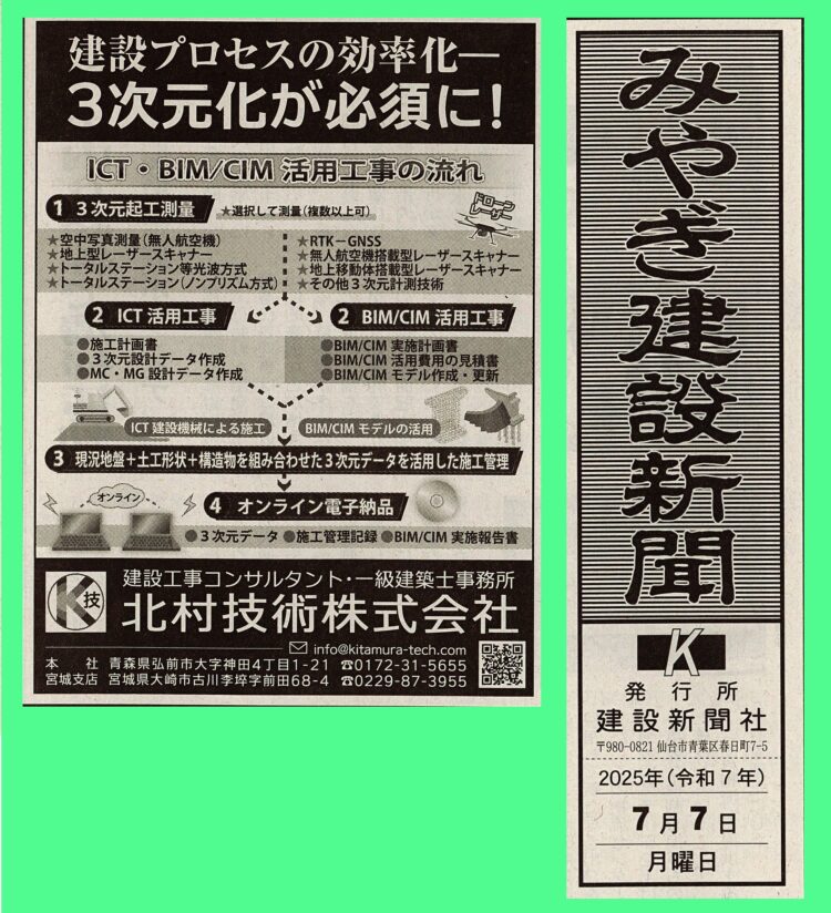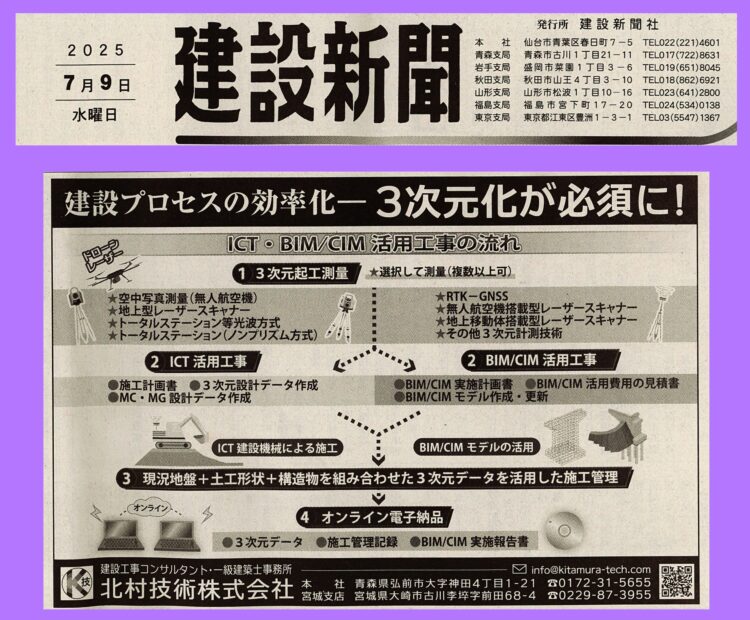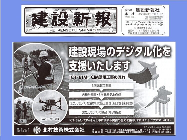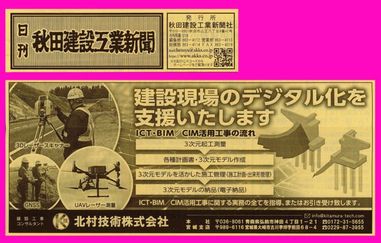 日刊建設青森様、日刊秋田建設工業新聞様、建設新報様、みやぎ建設新聞様、建設山形様、建設新聞様、ありがとうざいます✨
