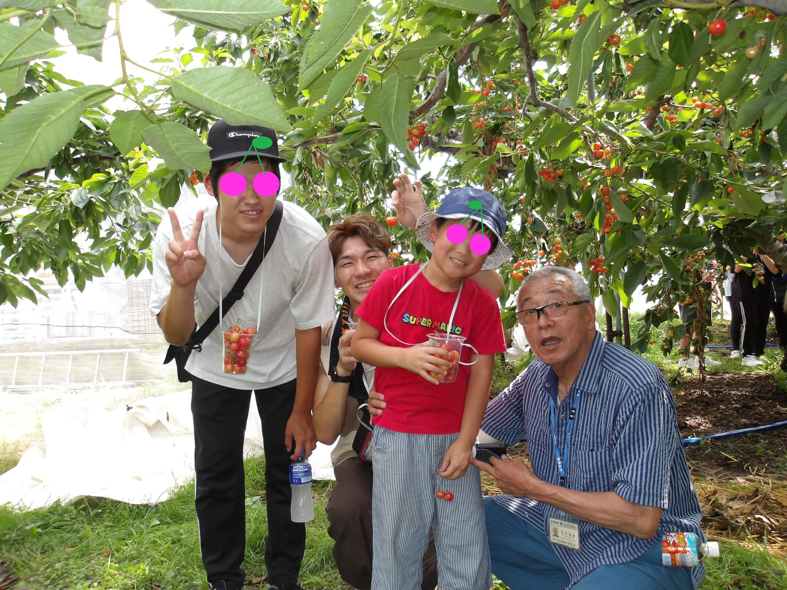 ⇩子供たちに混ざってサクランボ狩りを楽しむ大人たち😝