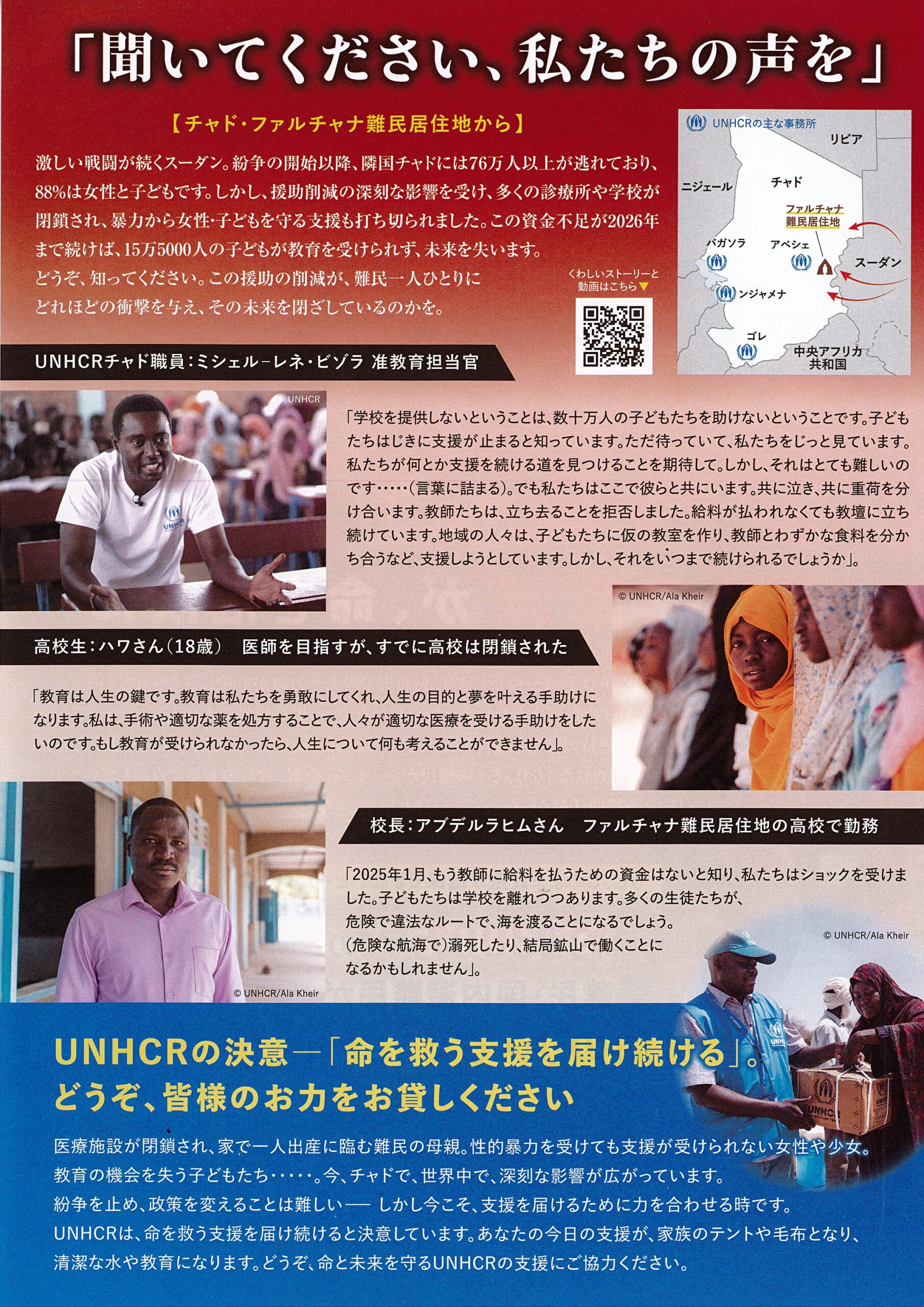 国連の難民支援機関であるUNHCR(国連難民高等弁務官事務所)の活動を支える日本の公式支援窓口です