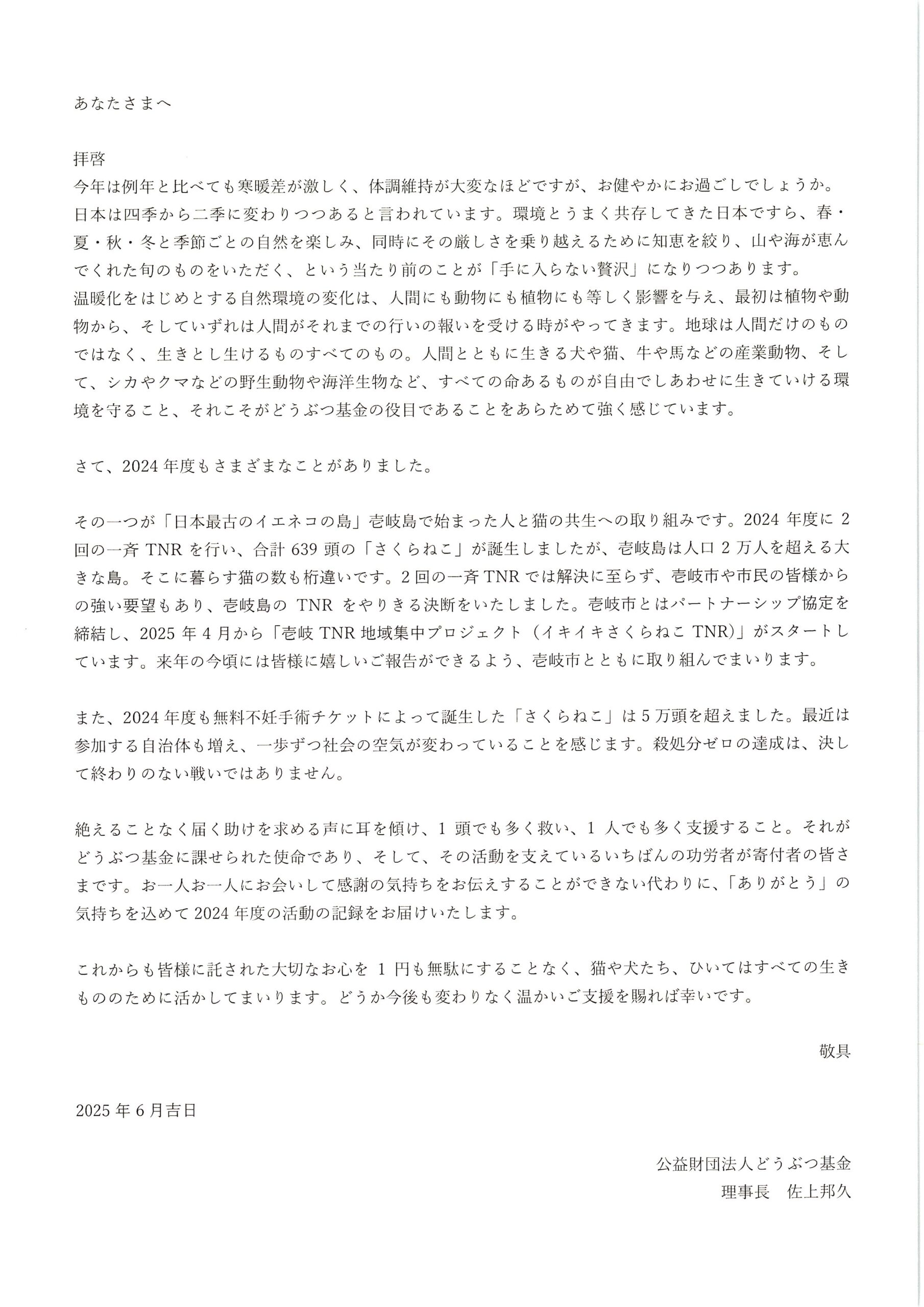 北村技術ではどうぶつ基金様に定期的な寄付を行っております
