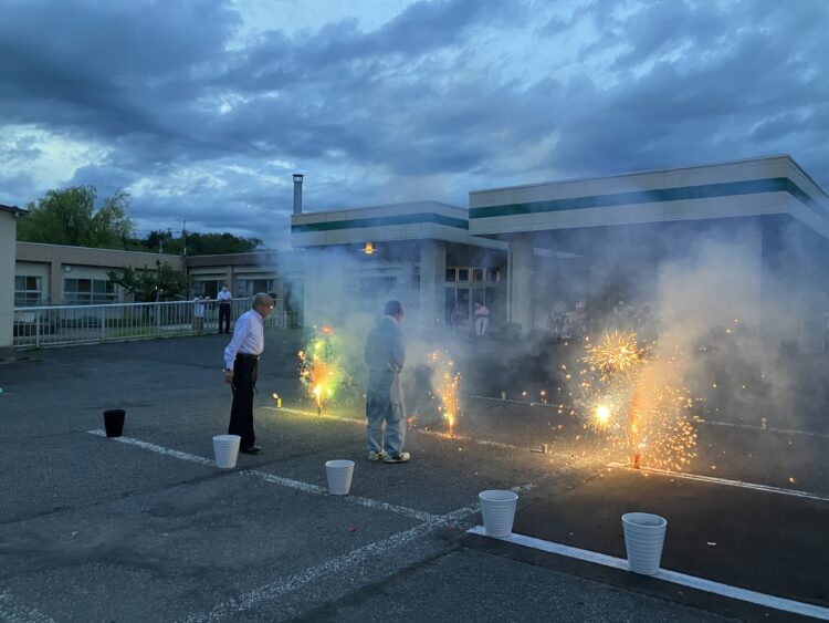昨年よりも打ち上げ花火を多く用意し、社長はじめ6名のスタッフでおじゃましてきましたよ