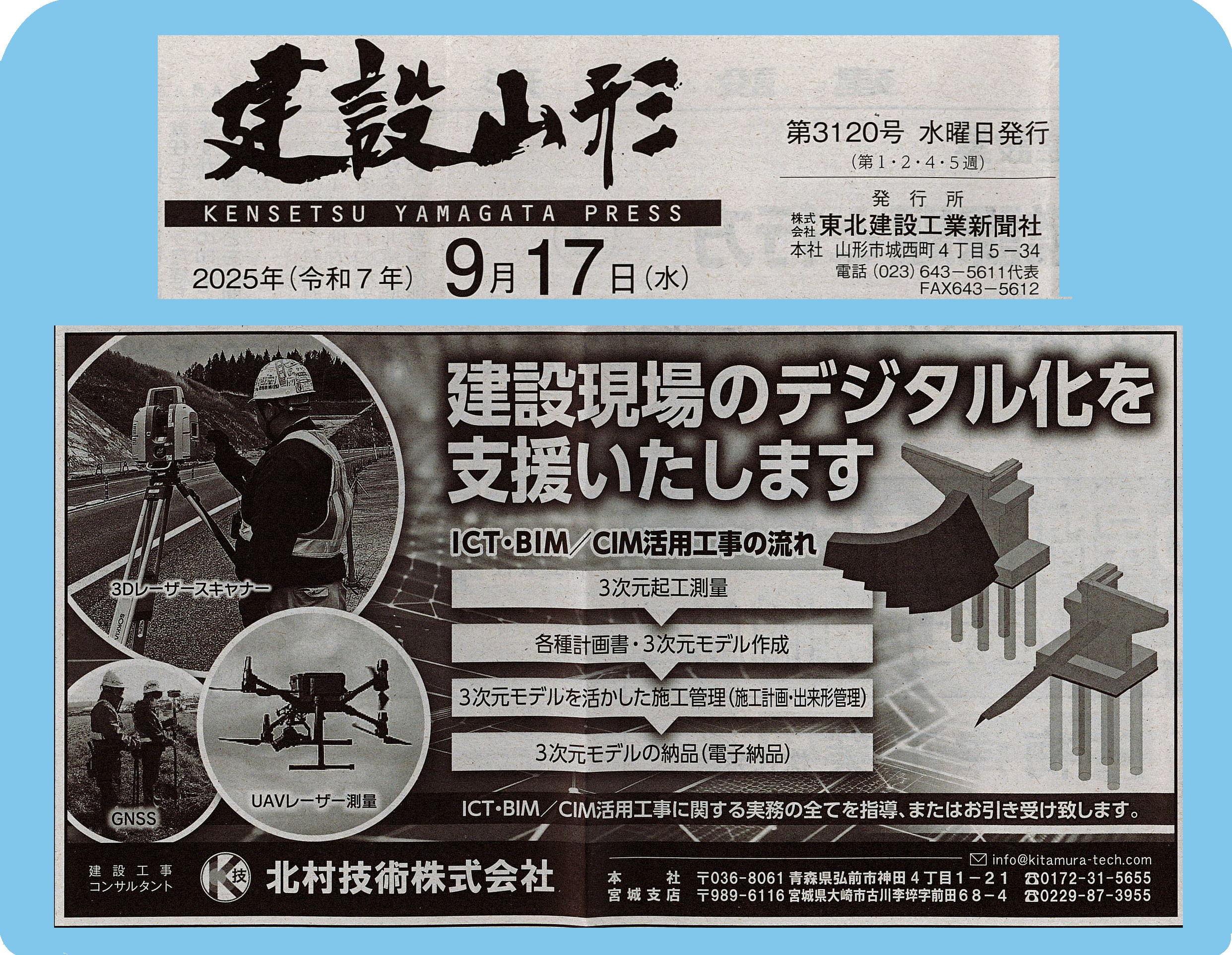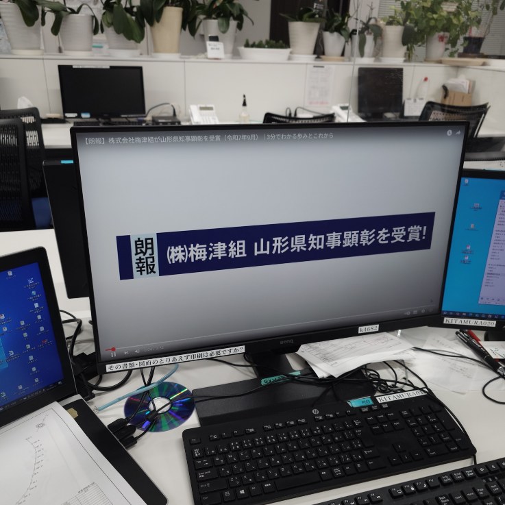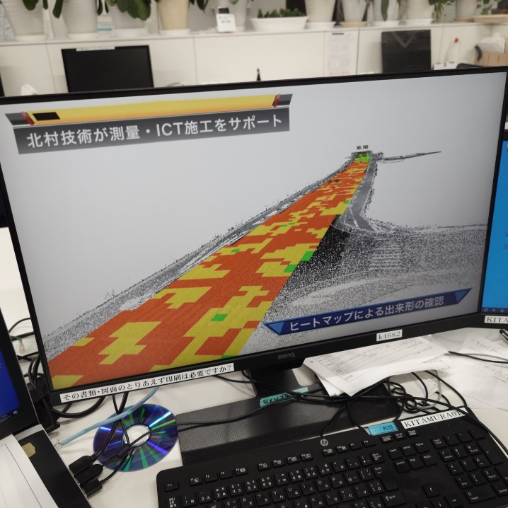 9月上旬、山形県の地元企業株式会社梅津組の舗装工事において三次元点群データーを利用したICT施工技術とシュミレーション技術を北村技術が提案ICT建機も駆使し見学会も開催、、、なんと『評価点95点』山形県知事顕彰受賞