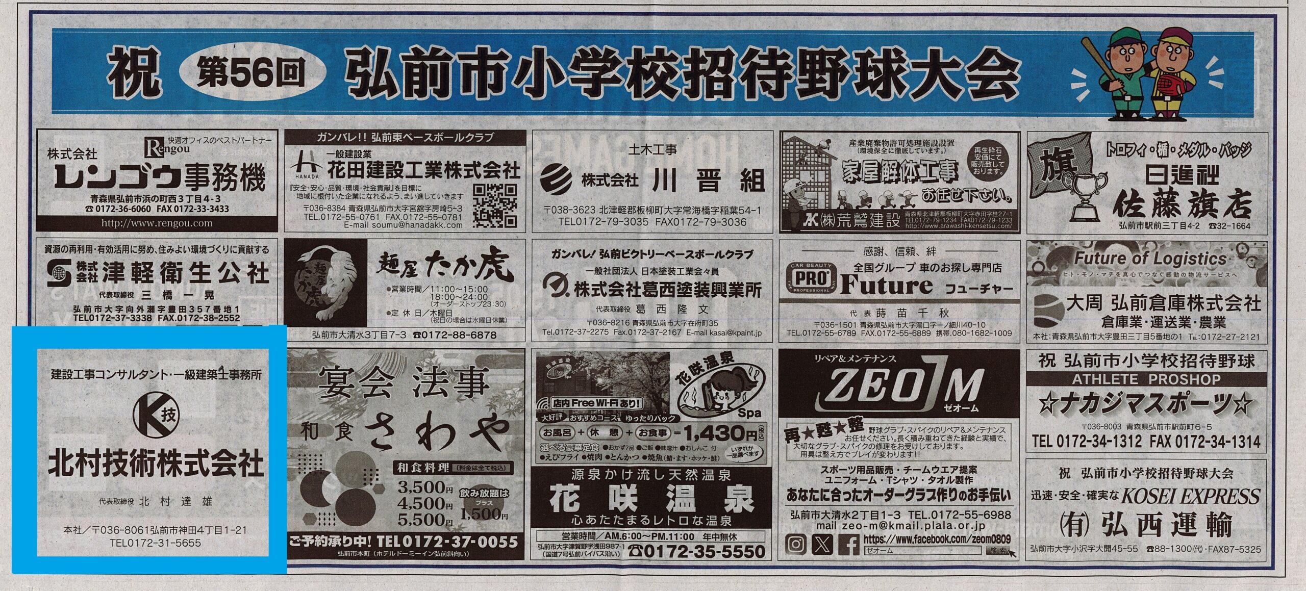 北村技術も毎年、"頑張る子供たちを応援したい!"との社長の熱い思いから陸奥新報さんへ広告を掲載していただいております🤭