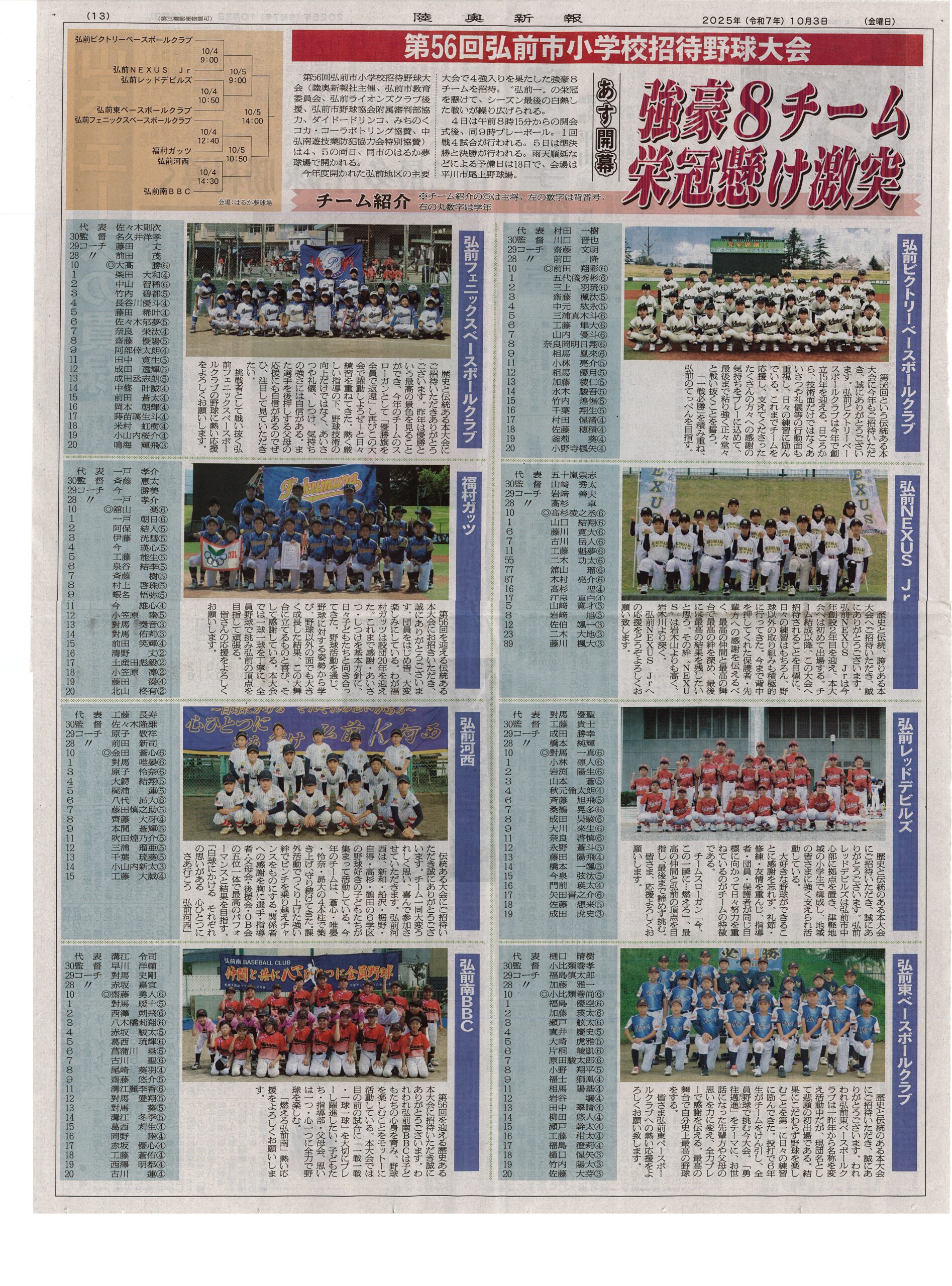 第56回 弘前市小学校招待野球大会が開催されました⚾