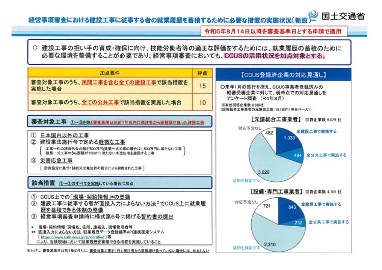 すでに国土交通省からCCUSは「その活用状況を加点対象とする」という指針も示されています。⇩