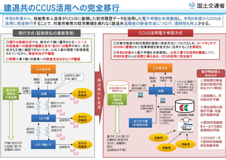 CCUSの利用は、公共工事や民間工事の入札時にも原則化されており、