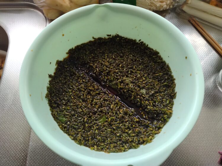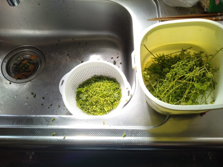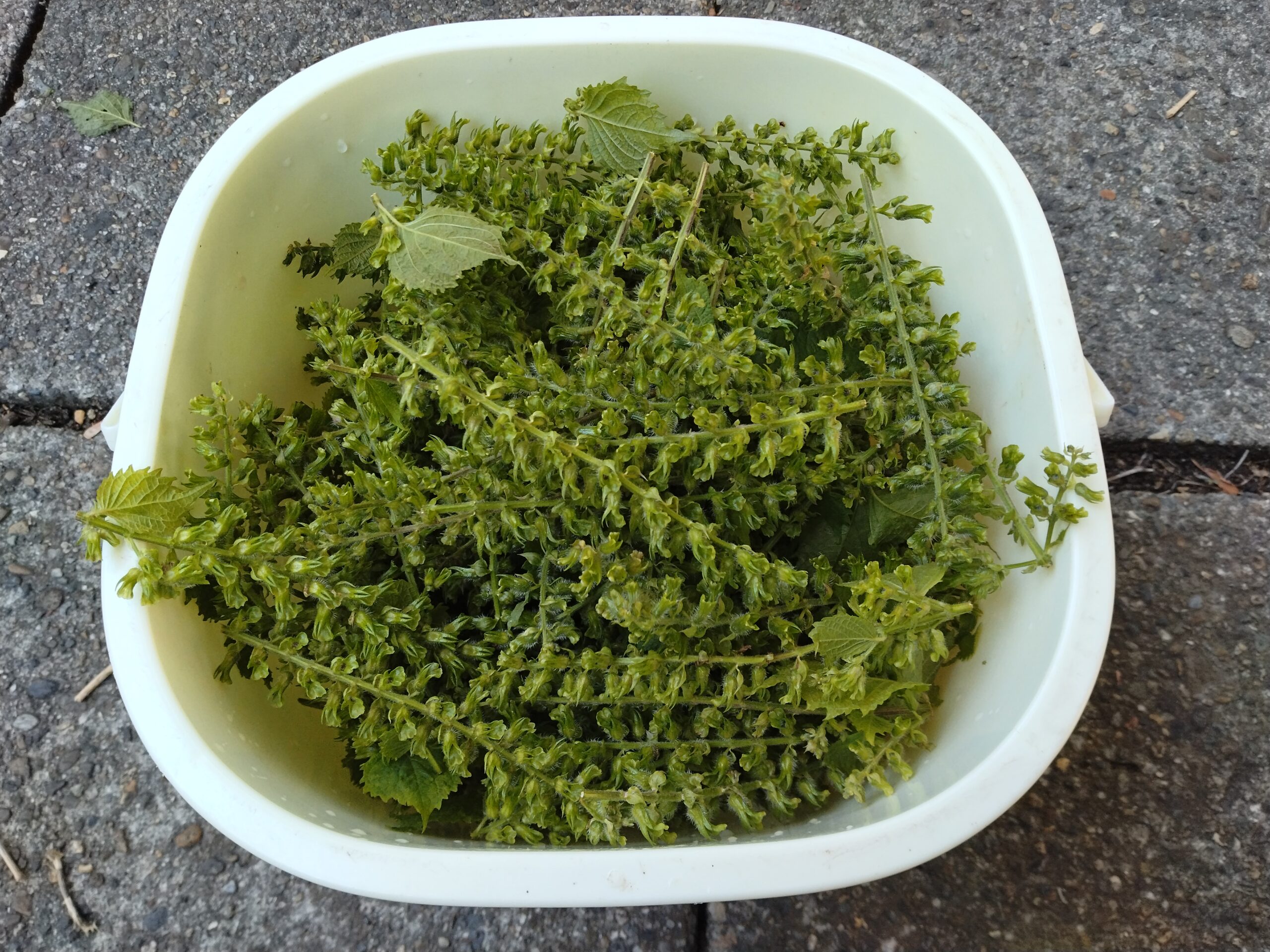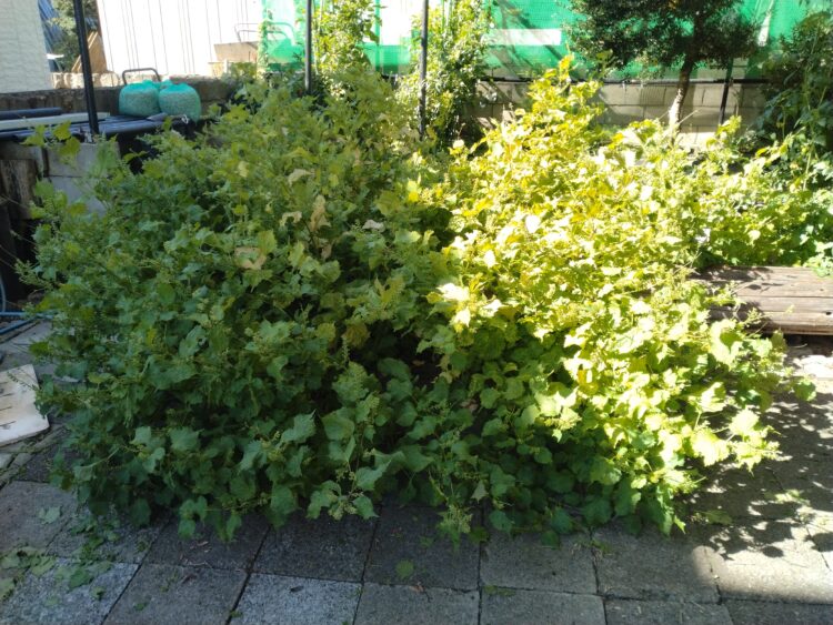我が家の庭に増殖した大葉 初めは2本から植えました。徐々に勢力を拡大して、今では最初に植えた場所はもう生えずにベンチ周りを占用。 葉の色が変わり始めたので、花実を収穫しました。水に浸しあく抜きし、脱水後醤油に3日後にはいい感じに漬かるでしょう。 酢と砂糖を加えれば市販のあれになります。Its-show