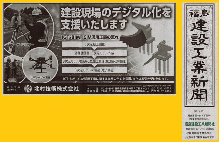 日刊岩手建設工業新聞様、日刊秋田建設工業新聞様、福島建設工業新聞様、掲載いただきありがとうございますヽ(^o^)丿