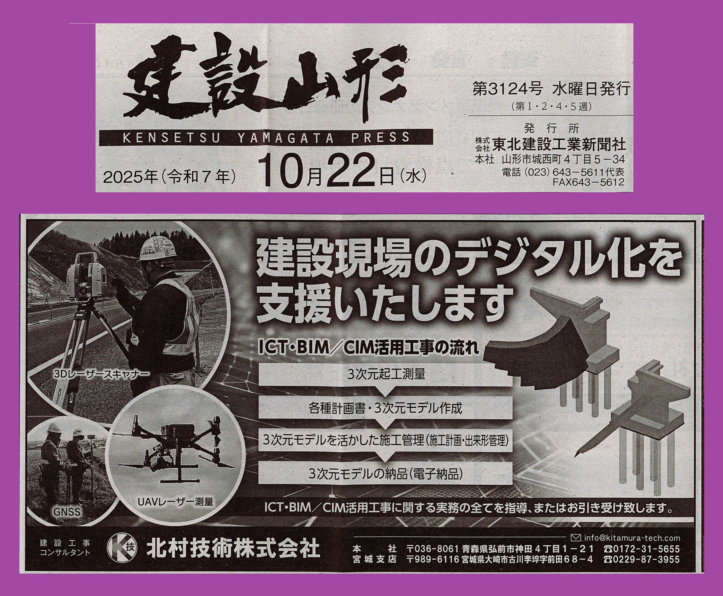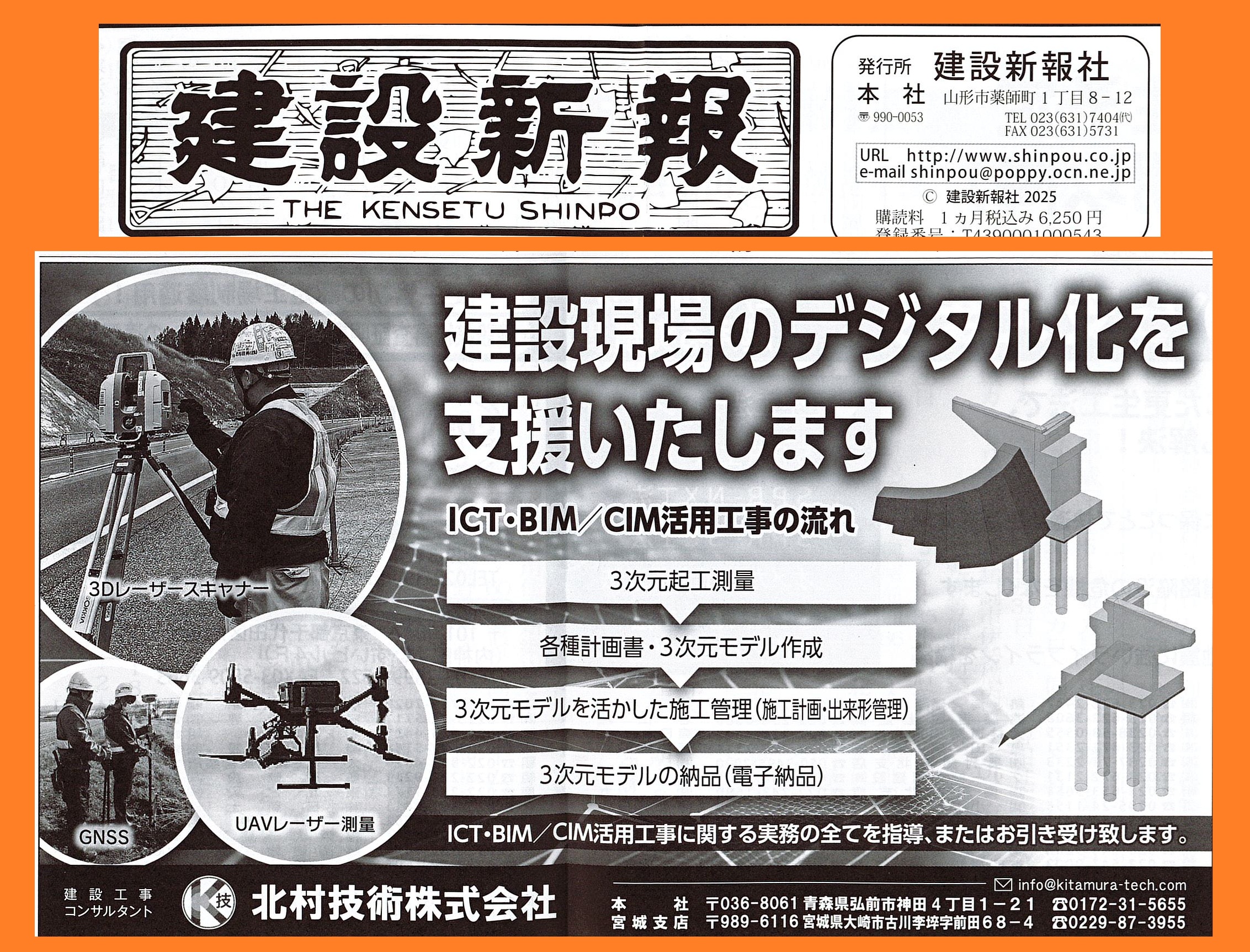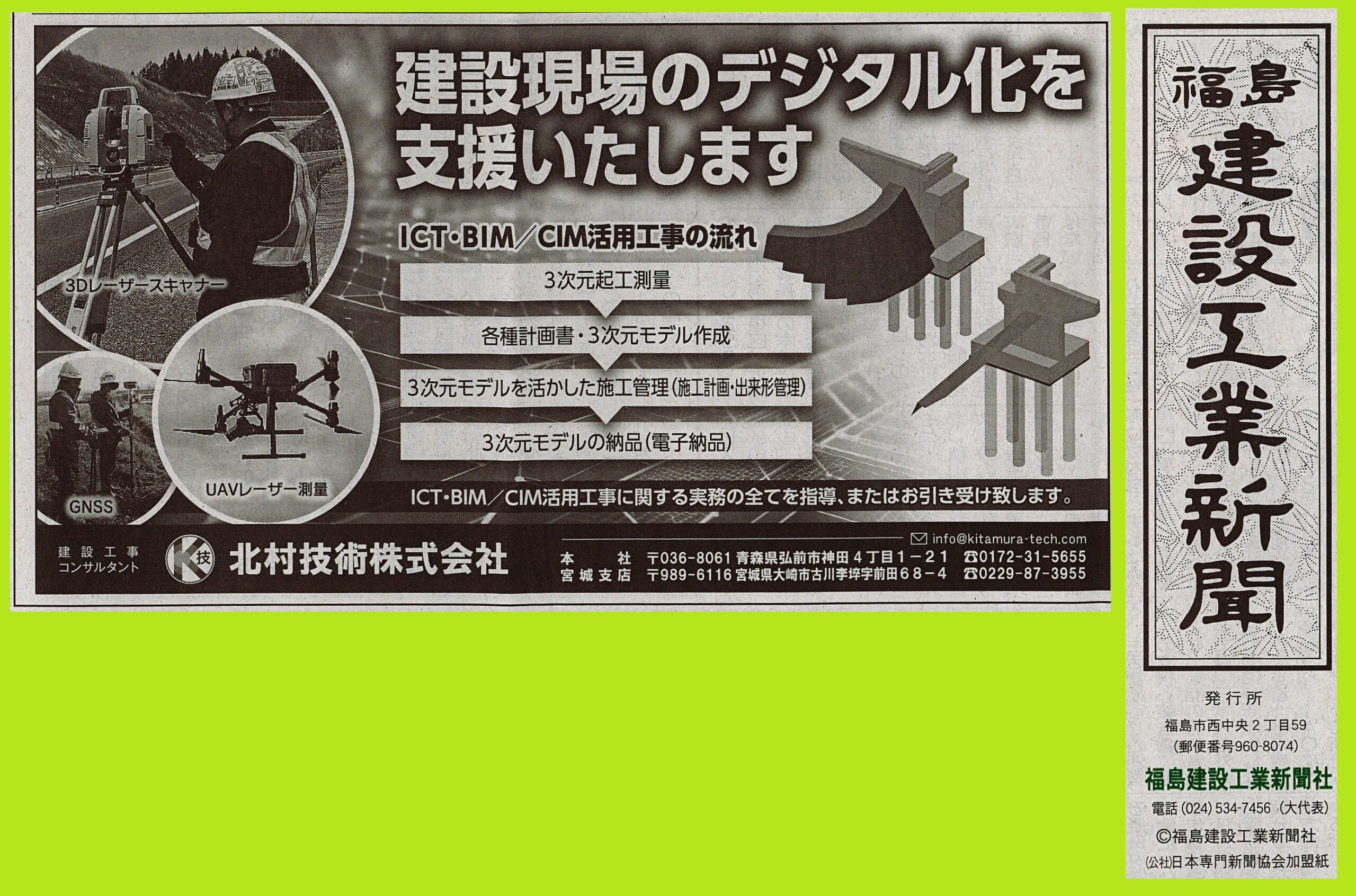 建設新聞様、福島建設工業新聞様、建設山形様、建設新報様、日刊青森建設工業新聞様、日刊岩手建設工業新聞様、掲載ありがとうございます(*´ω`*)