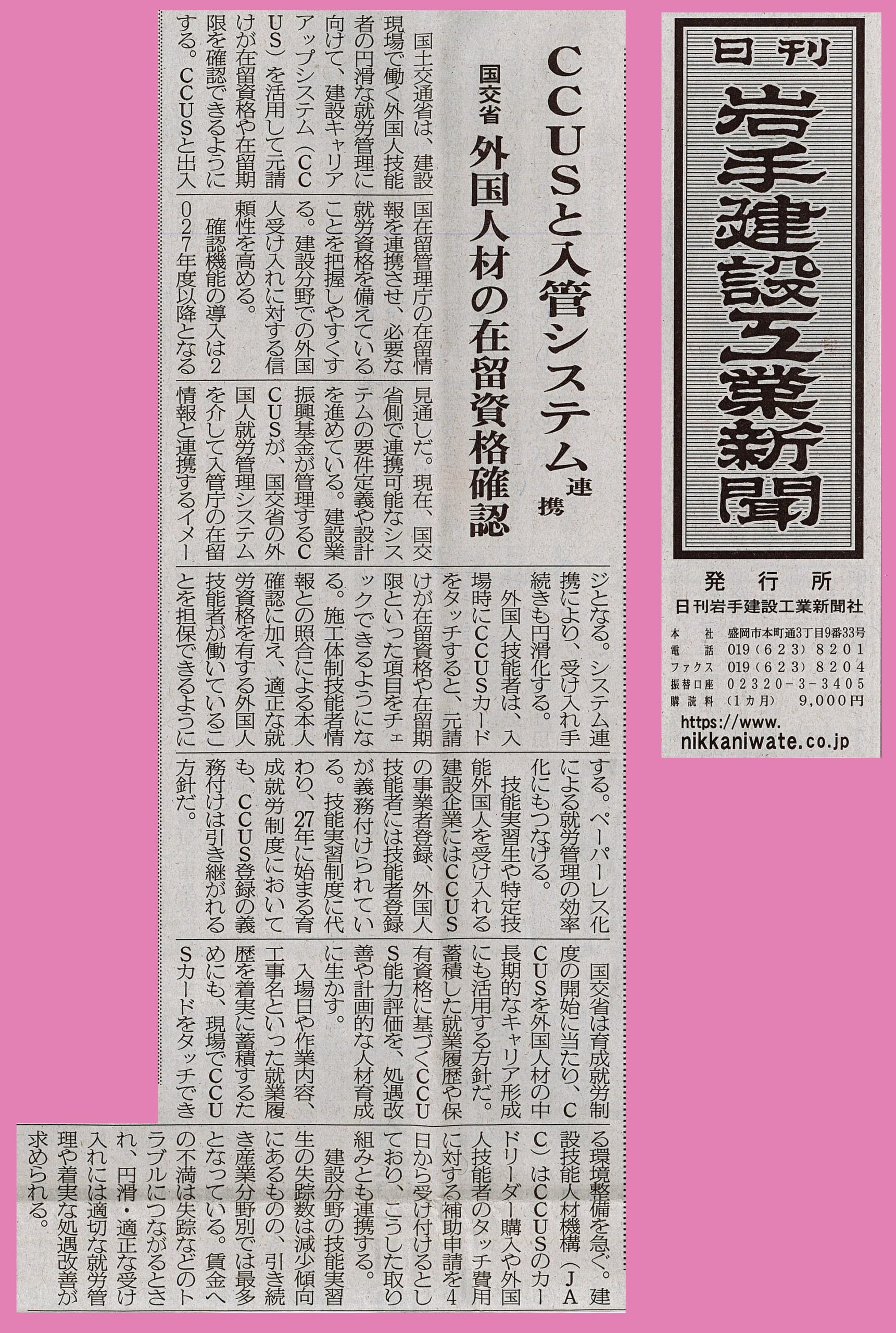 11月4日付 日刊岩手建設工業新聞様に掲載の記事をご紹介いたします。