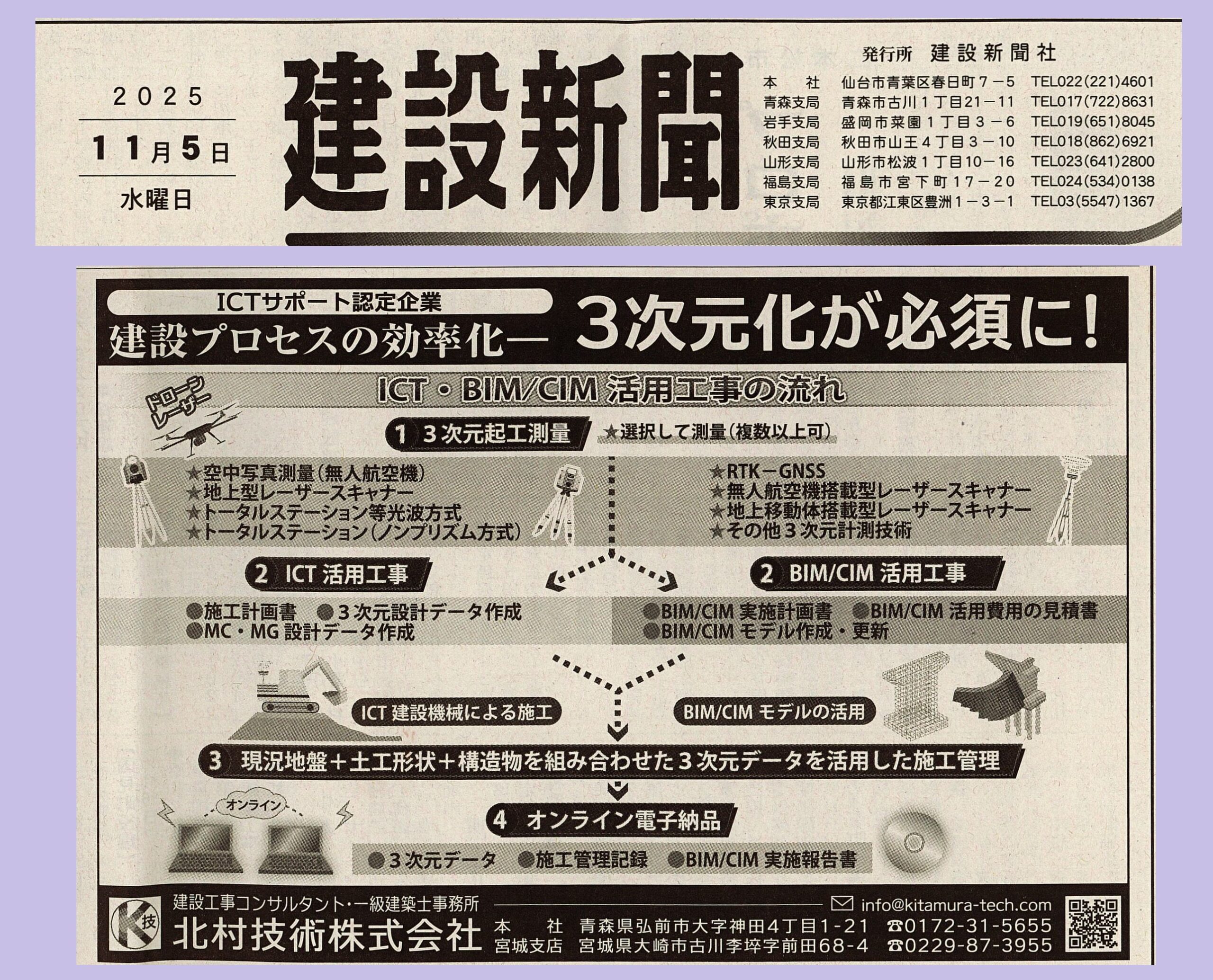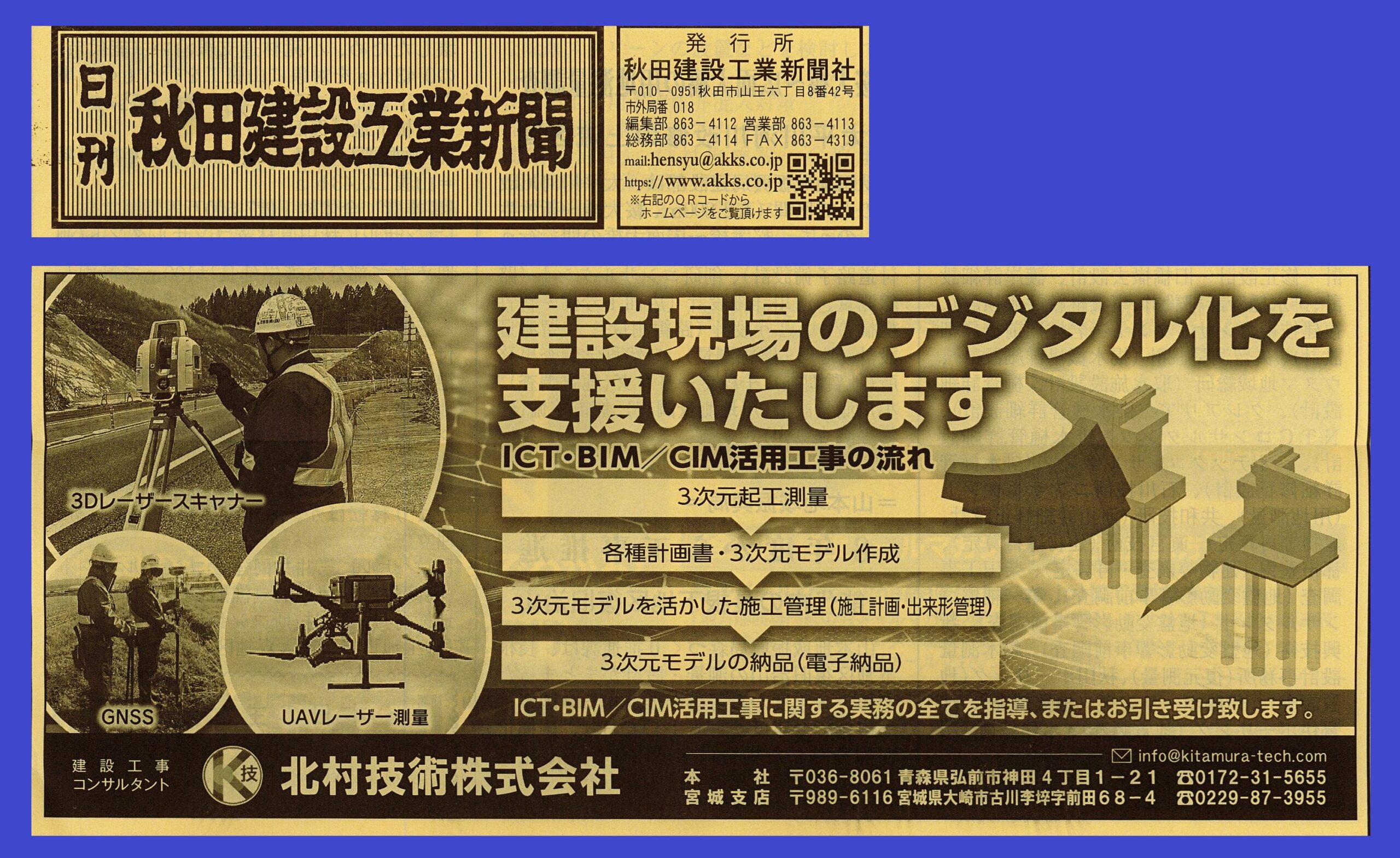 建設新聞様、日刊秋田建設工業新聞様、掲載ありがとうございます!