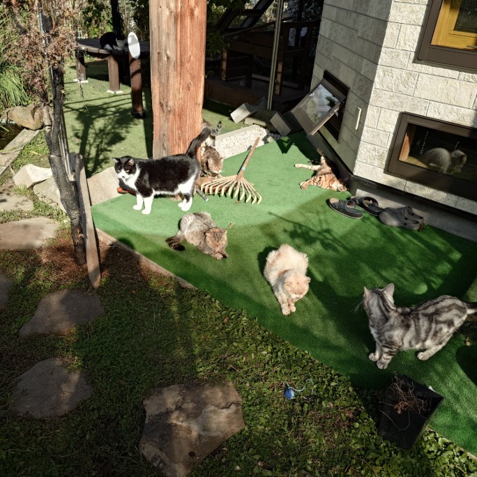 >我が家のネコたち16匹庭付き天然芝つく天然水付き
