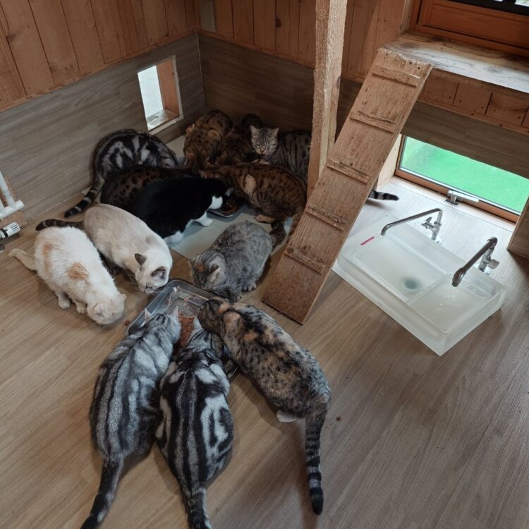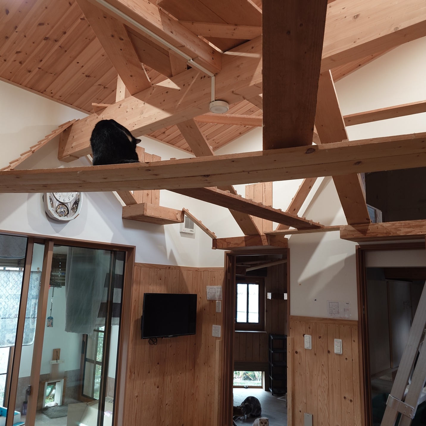 これが全て我が家のネコ部屋高さ7メートル広さ20坪とロフト渡り廊下、トイレ砂場、庭木ベランダ付きで幸せに暮らしています。