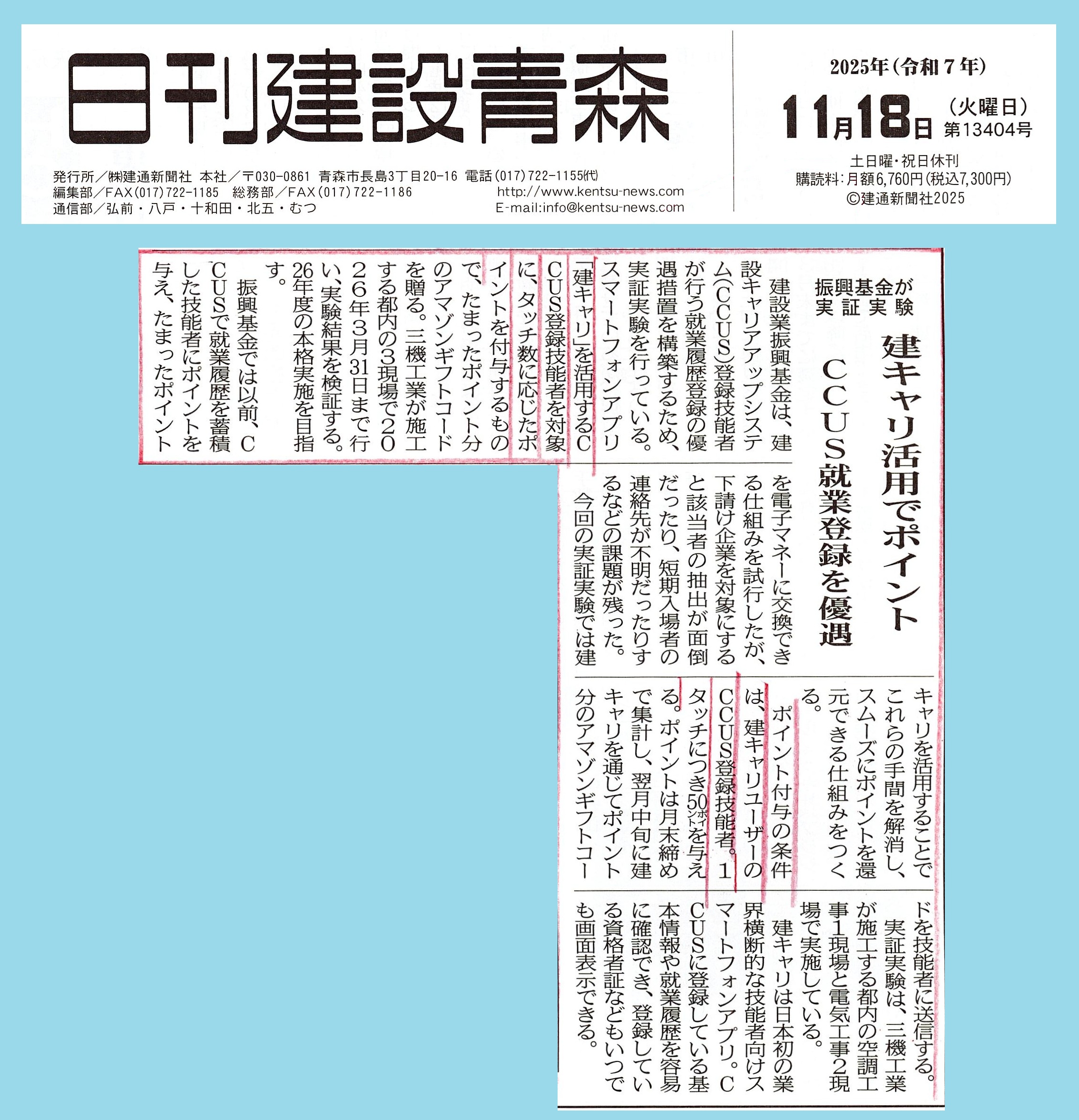 11月18日付 日刊建設青森様